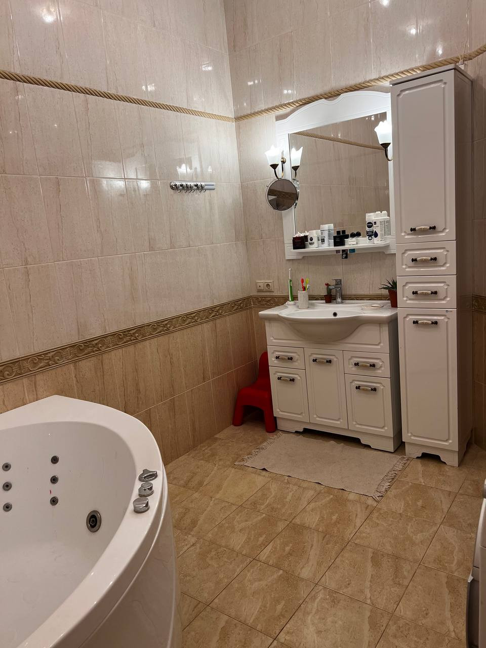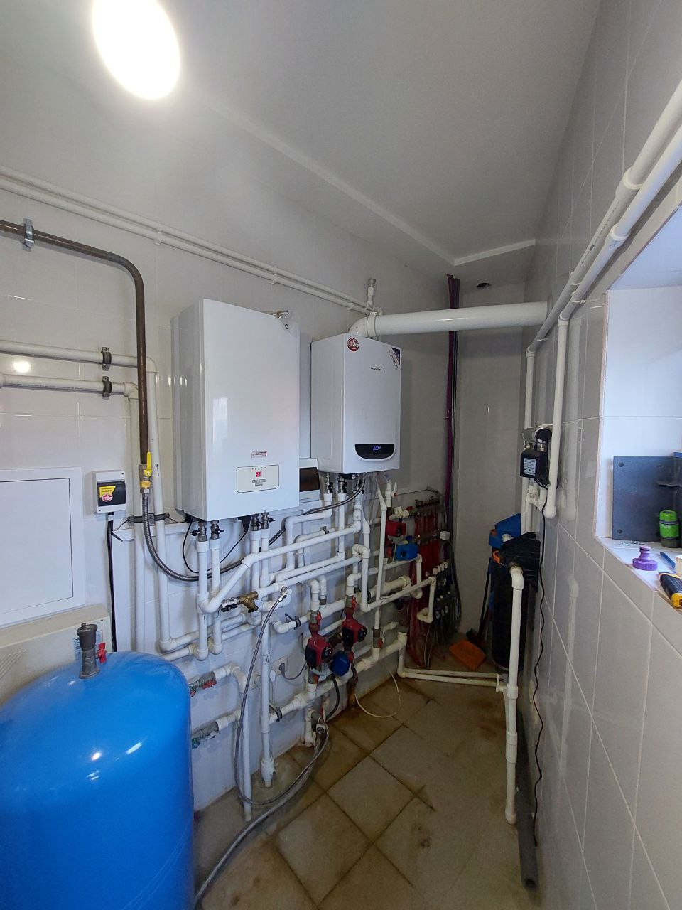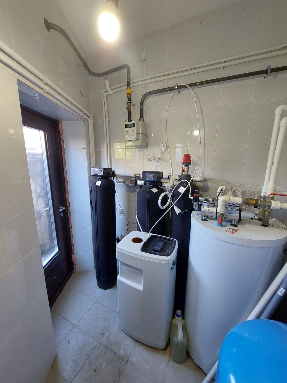 Отопление водяное. Полы с подогревом. Основной газовый котел 40 кВт (магистральный газ), резервный электрический котел 24 кВт. Электричество – 30 кВт, вода – своя скважина с 2 ступнями очистки (58 м), канализация – городская.