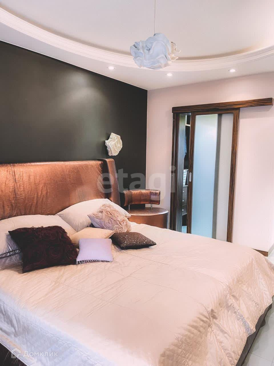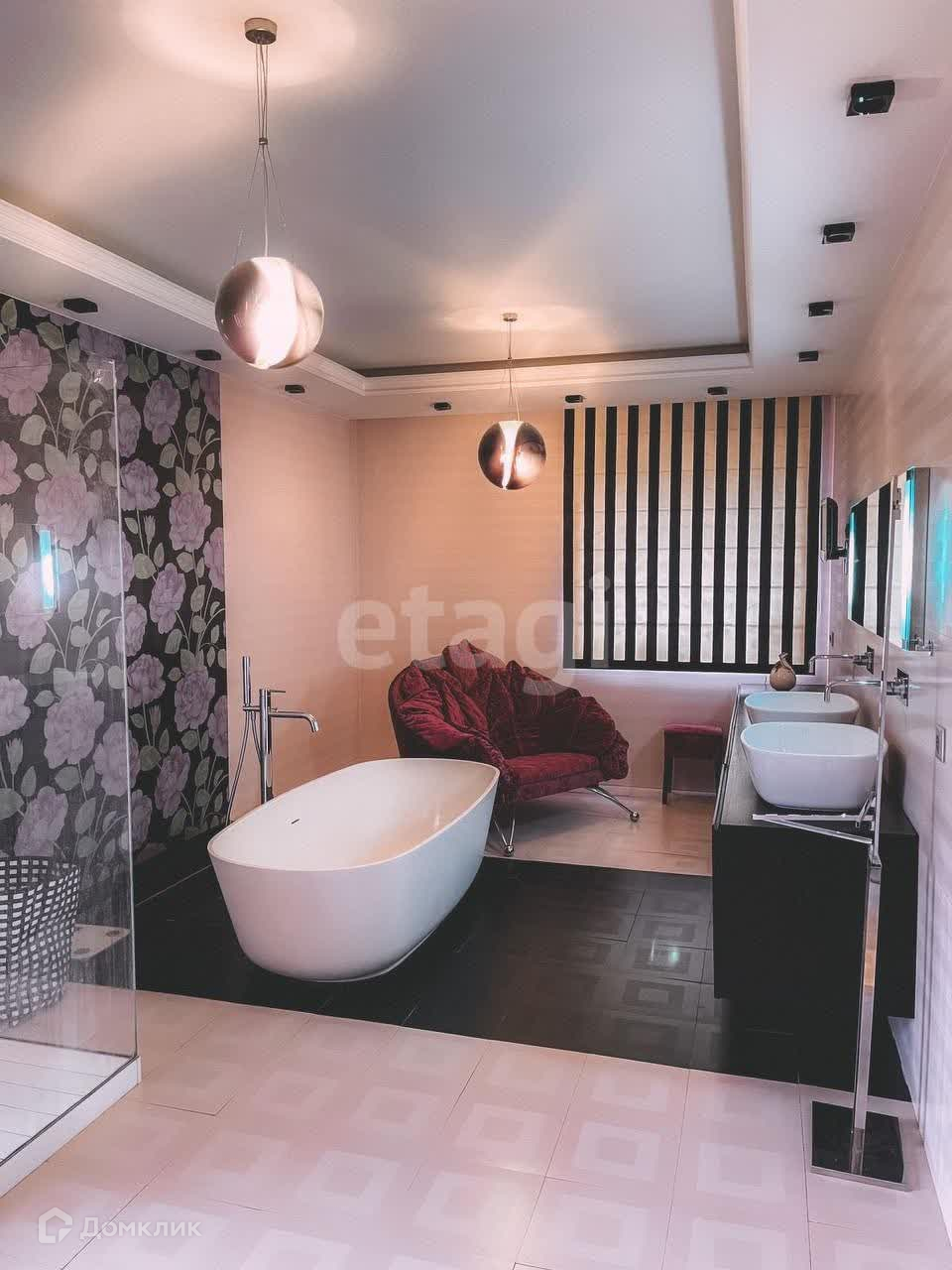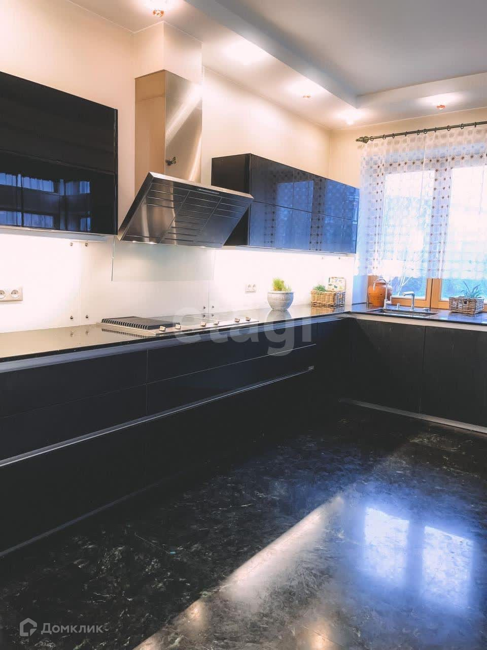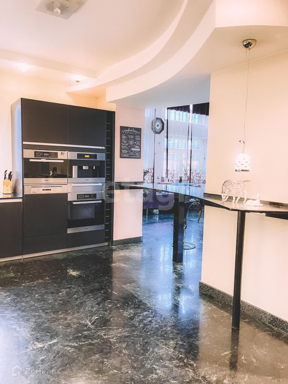 Внутренняя отделка сделана по авторскому дизайн-проекту с использованием дорогостоящих отделочных материалов и текстиля. Вся мебель выполнена на заказ. Бытовая техника бренда Miele.