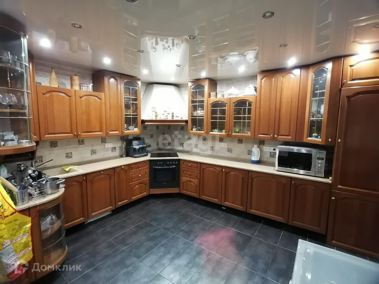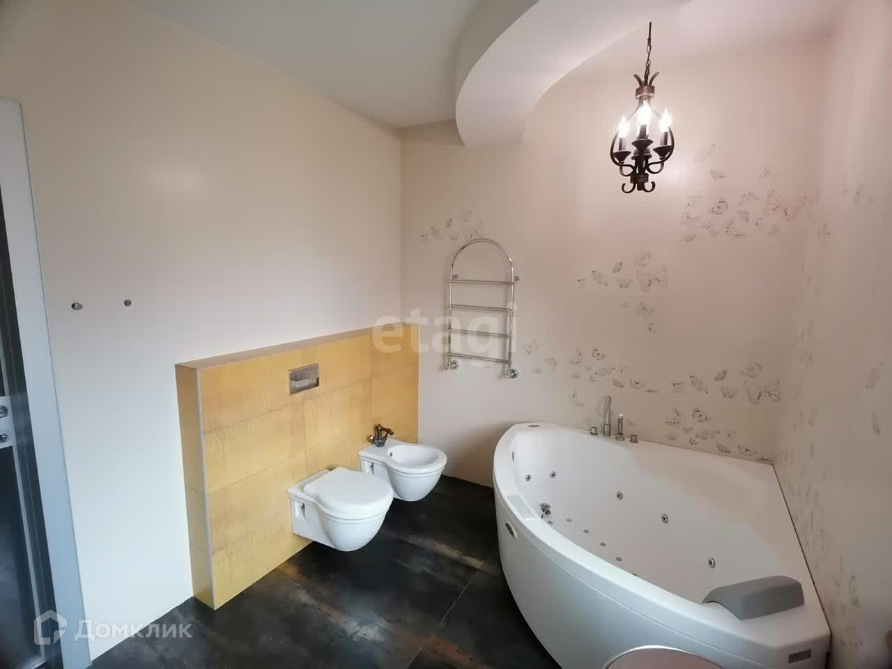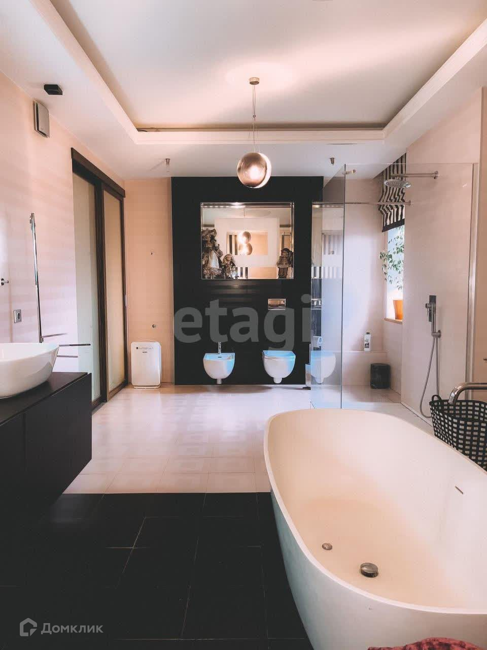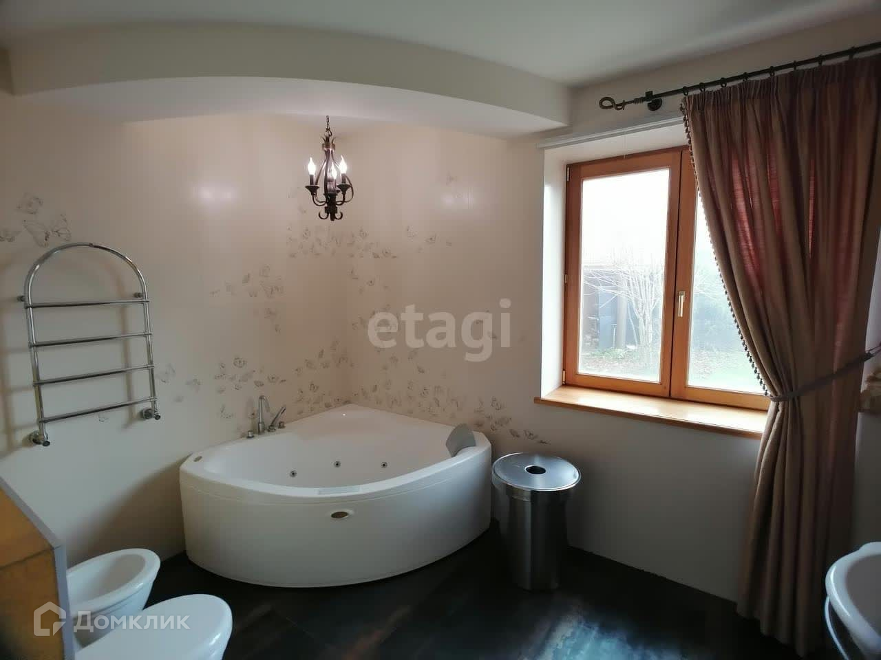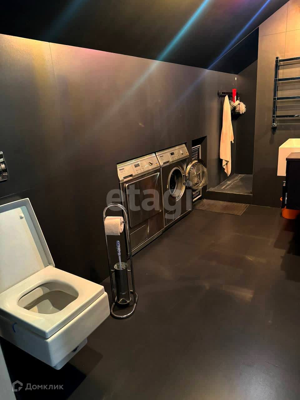 Внутренняя отделка сделана по авторскому дизайн-проекту с использованием дорогостоящих отделочных материалов и текстиля. Вся мебель выполнена на заказ. Бытовая техника бренда Miele.