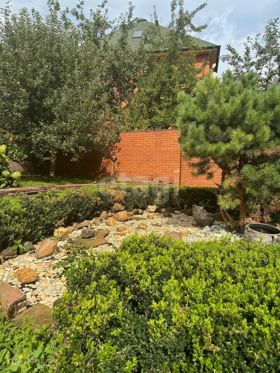 Участок 15 соток. Ландшафт выполнен в каскадном стиле. Имеются плодовые деревья, цветы и мангальная зона.
