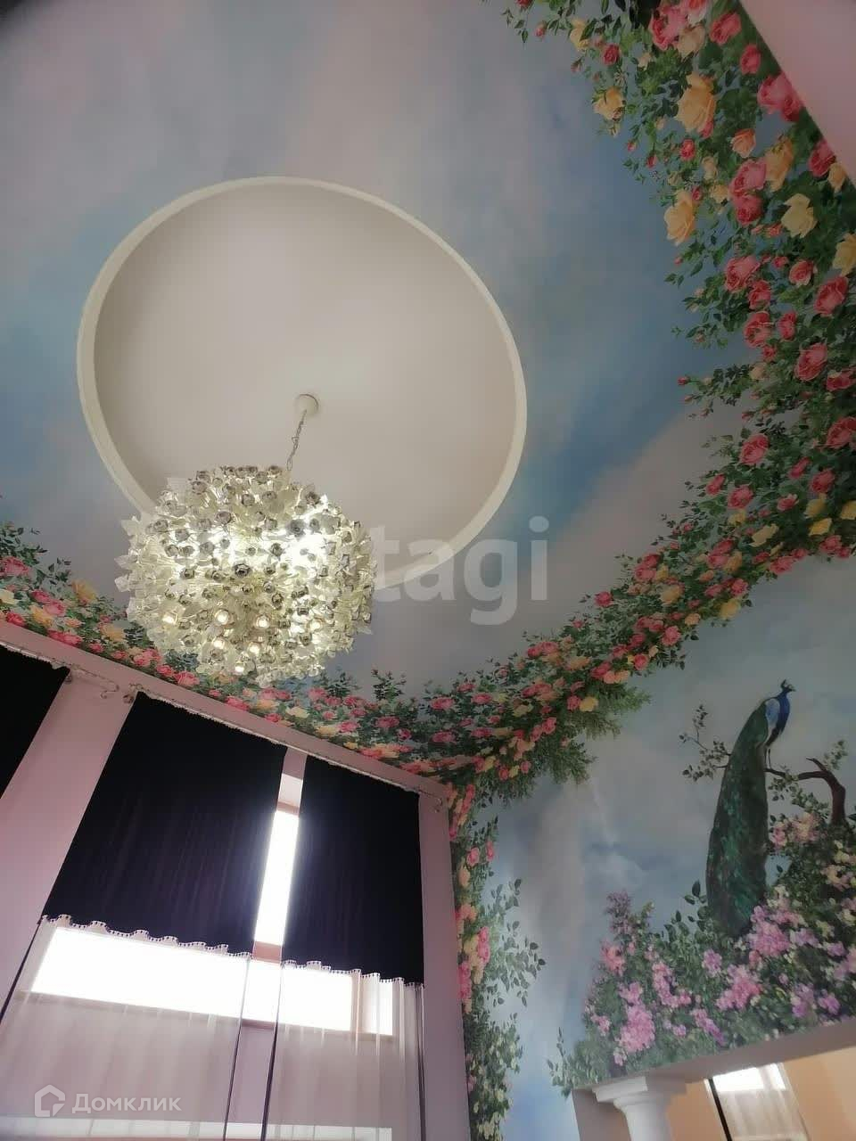 1 этаж: просторная кухня – гостиная, камин, зимний сад с расписными потолками, мастер-спальня.