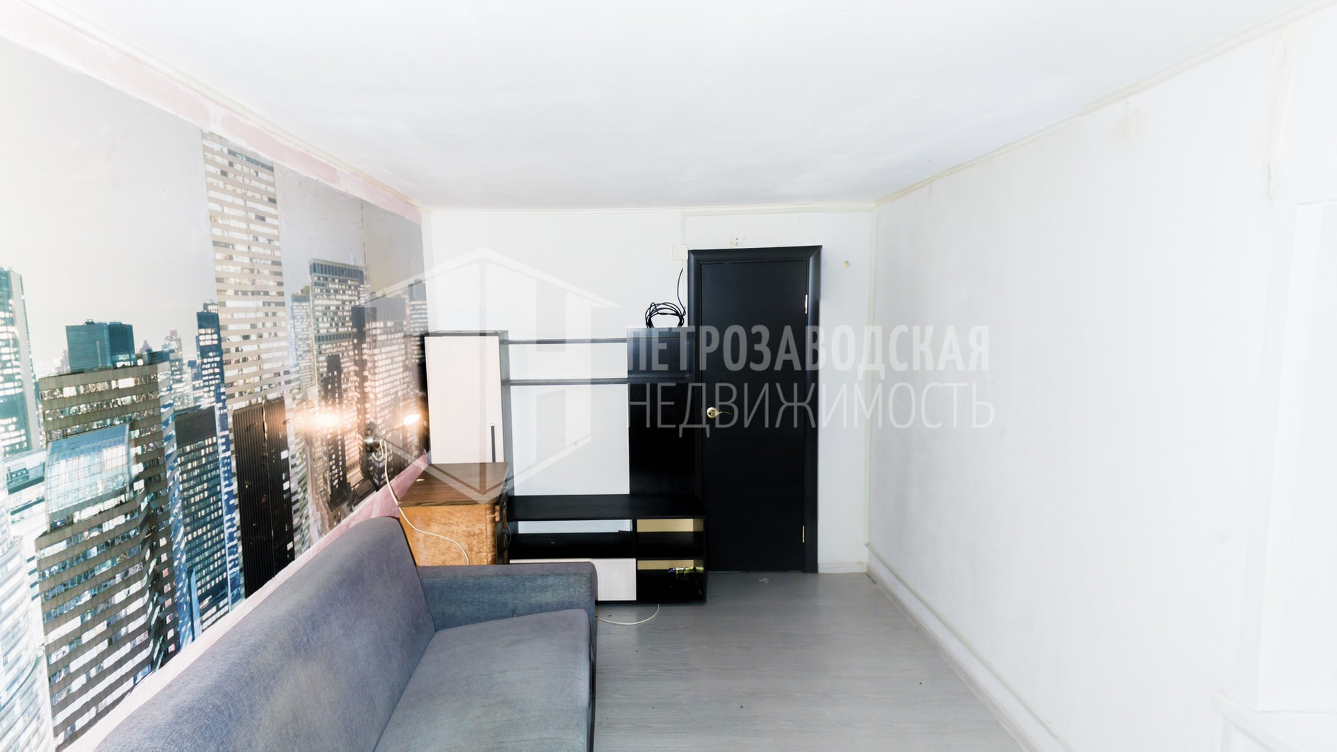 - В гостиной с кухней белый ленолеум;
