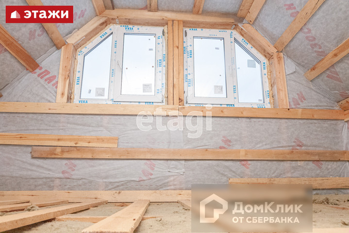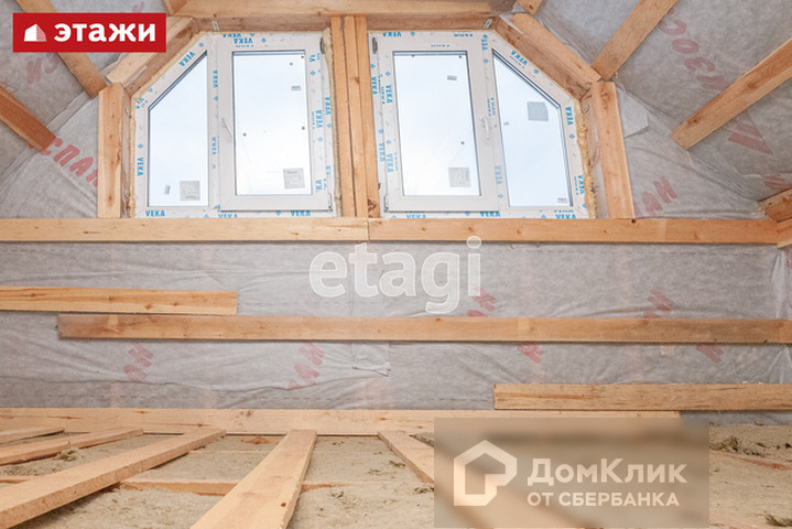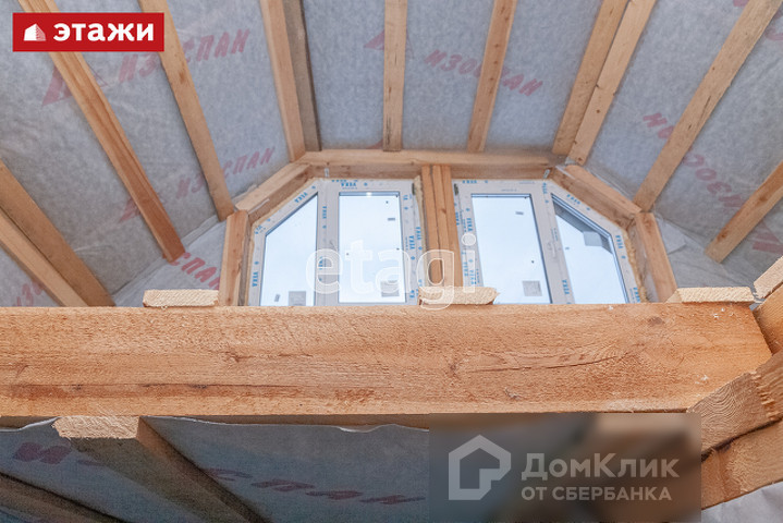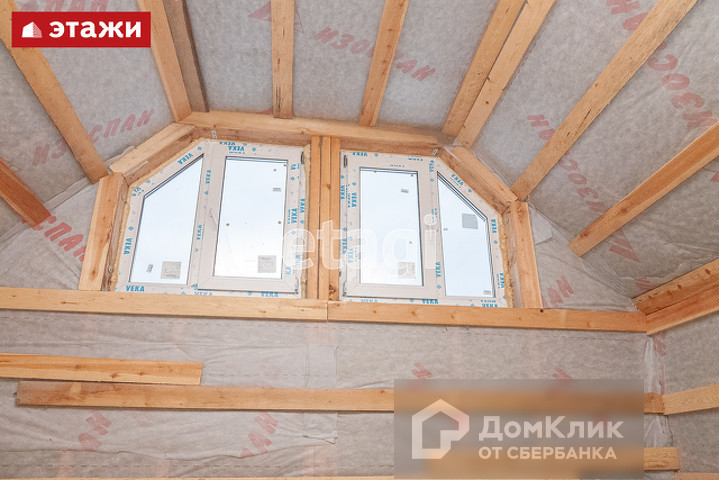 Все окна пластиковые. Положено 25 см утеплителя. В качестве утеплителя по стенам и крыше использован финский parok. В мансардном помещении также возможно размещении комнаты, поэтому к площади основания можно добавить еще 36 м2: есть большое окно и все утеплено.