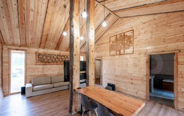 Дом состоит из двух спален по 10 м², кухни-гостиной площадью 33 м², санузла с ванной и душевой, а так же сауны с электрокаменкой. Также есть два помещения на мансардном этаже, пригодные для организации спальных мест или длительного хранения сезонных вещей.