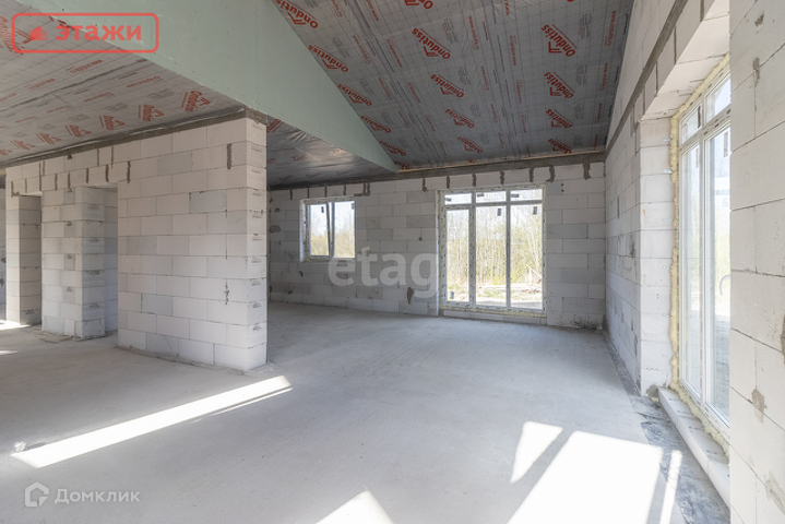 Общая площадь дома 101,6 м2 , по проекту 3 спальни,2 санузла и просторная кухня-гостиная с высоким потолком и двумя панорамными окнами.