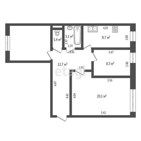 Площадь кухни 8.7 м2