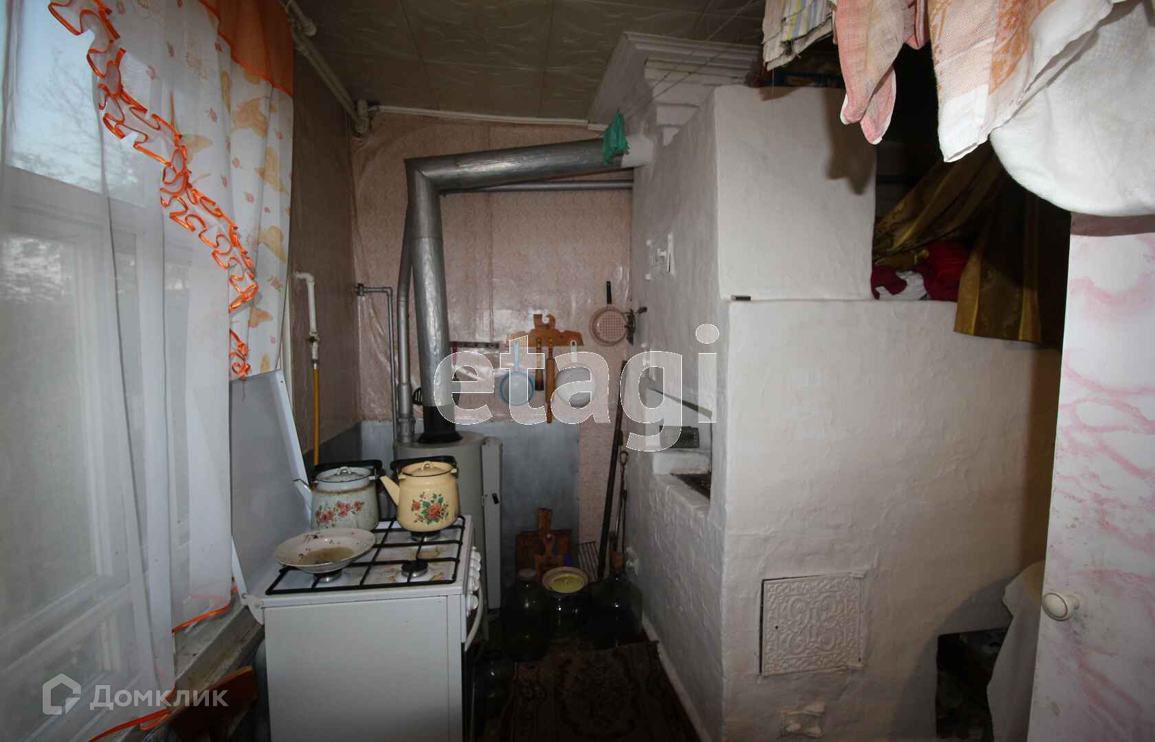 Внутри дома высокие потолки. Отапливается за счет газовой котла. Дом полностью электрофицирован. В доме большая кухня, большая гостинная, две отдельные спальни, веранда (требует ремонта), подсобные помещения.