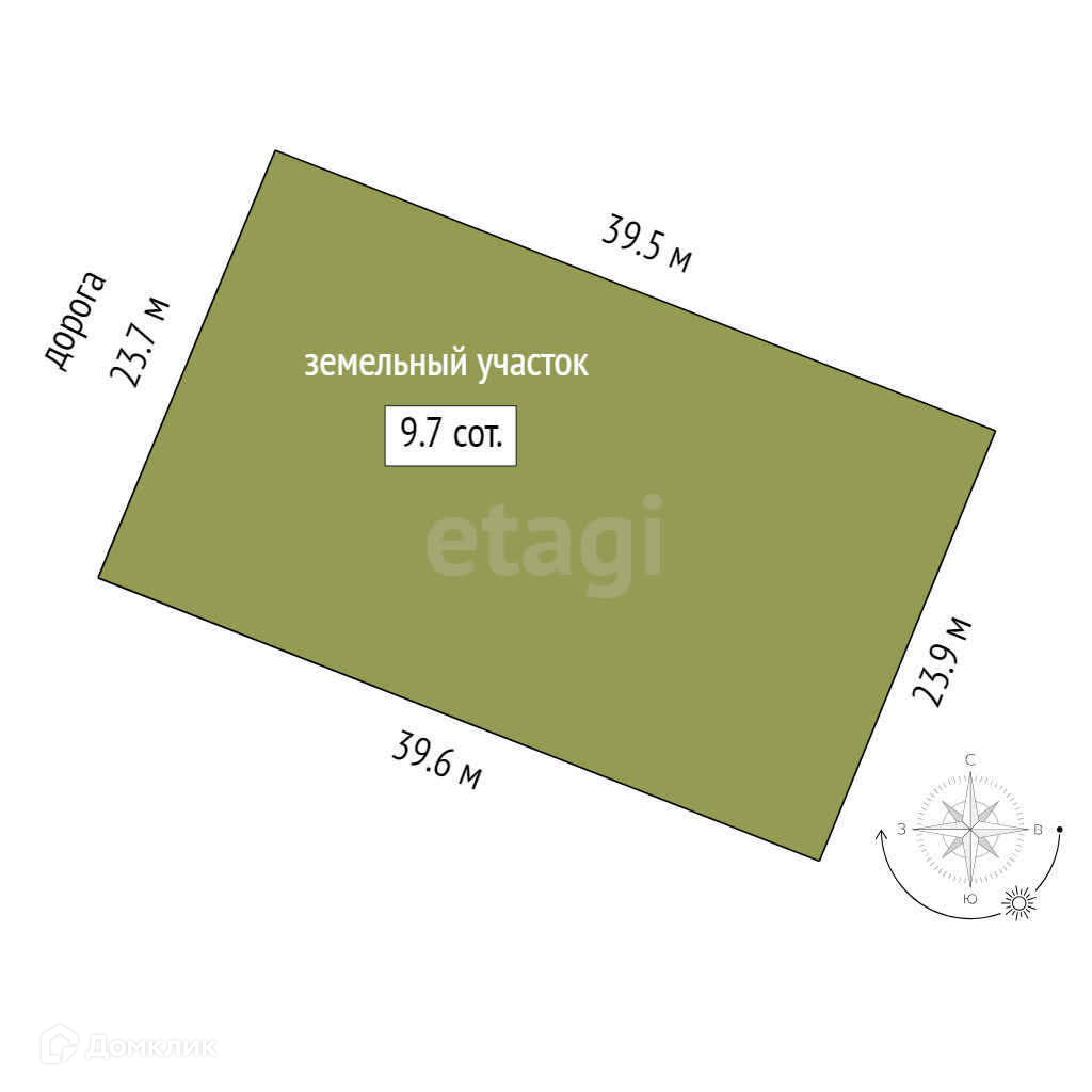 Площадь участка 9.7 сот.