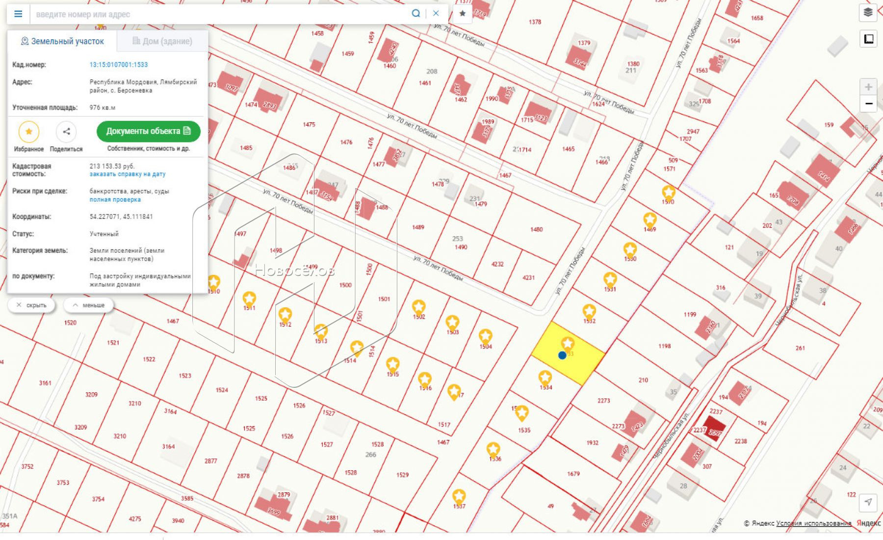 Данный участок с кадастровым номером 13:15:0107001:1533