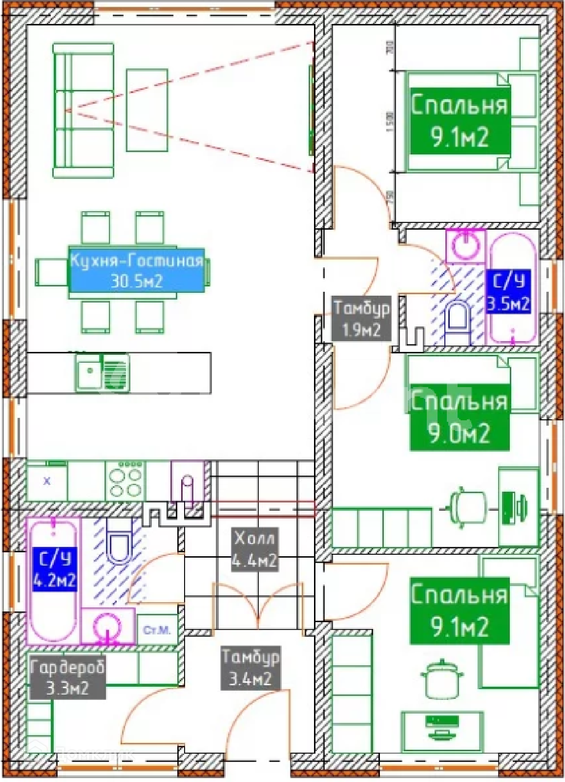 Площадь кухни 30.5 м2