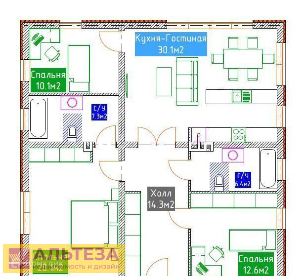 Кухня-гостиная — 31,25 м²