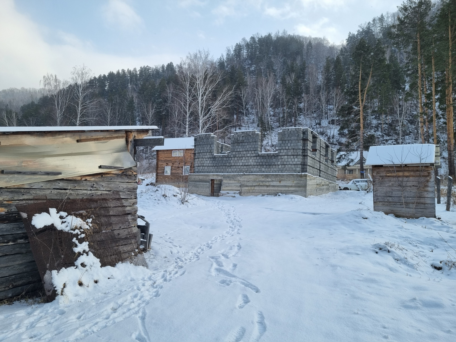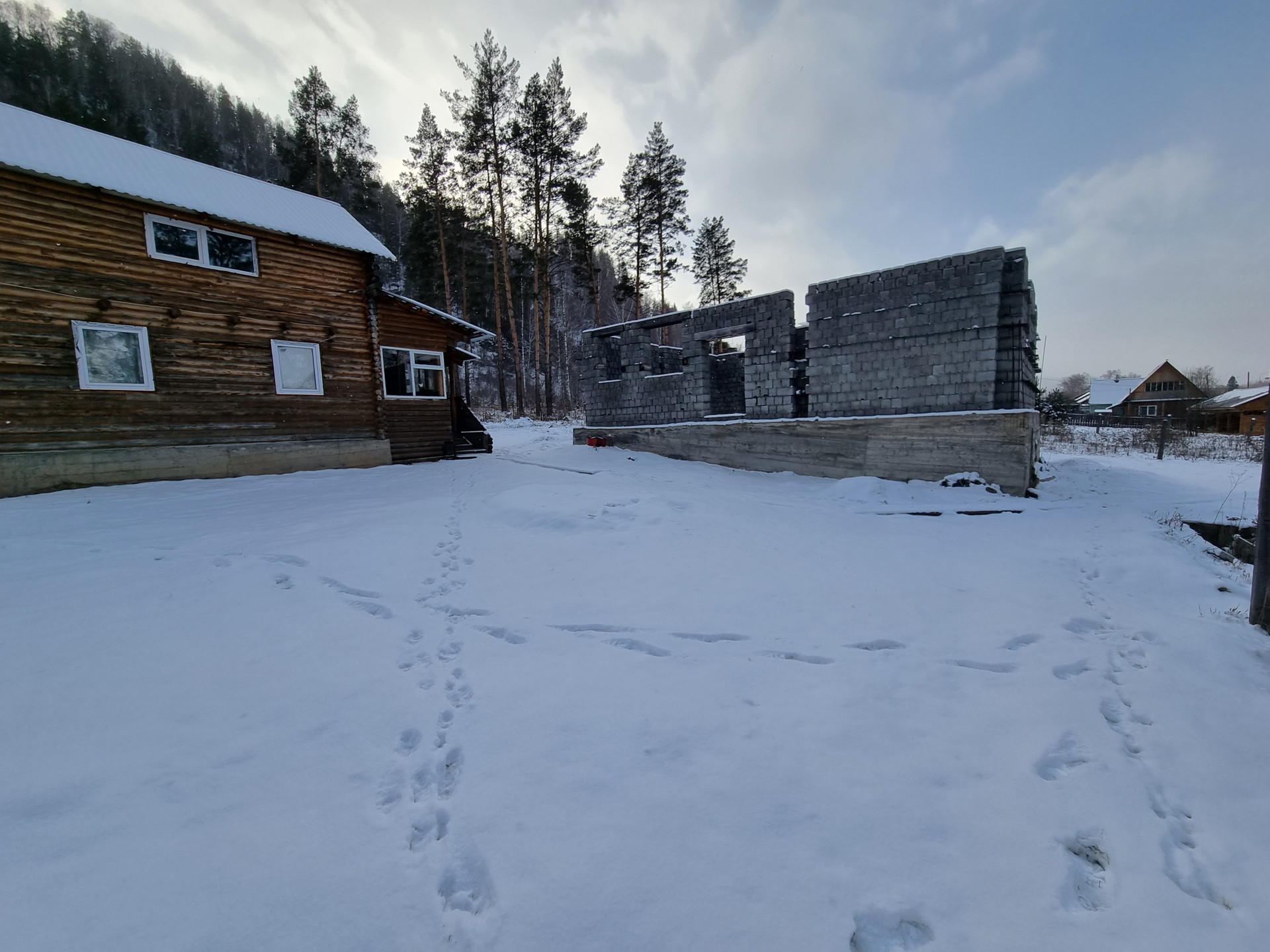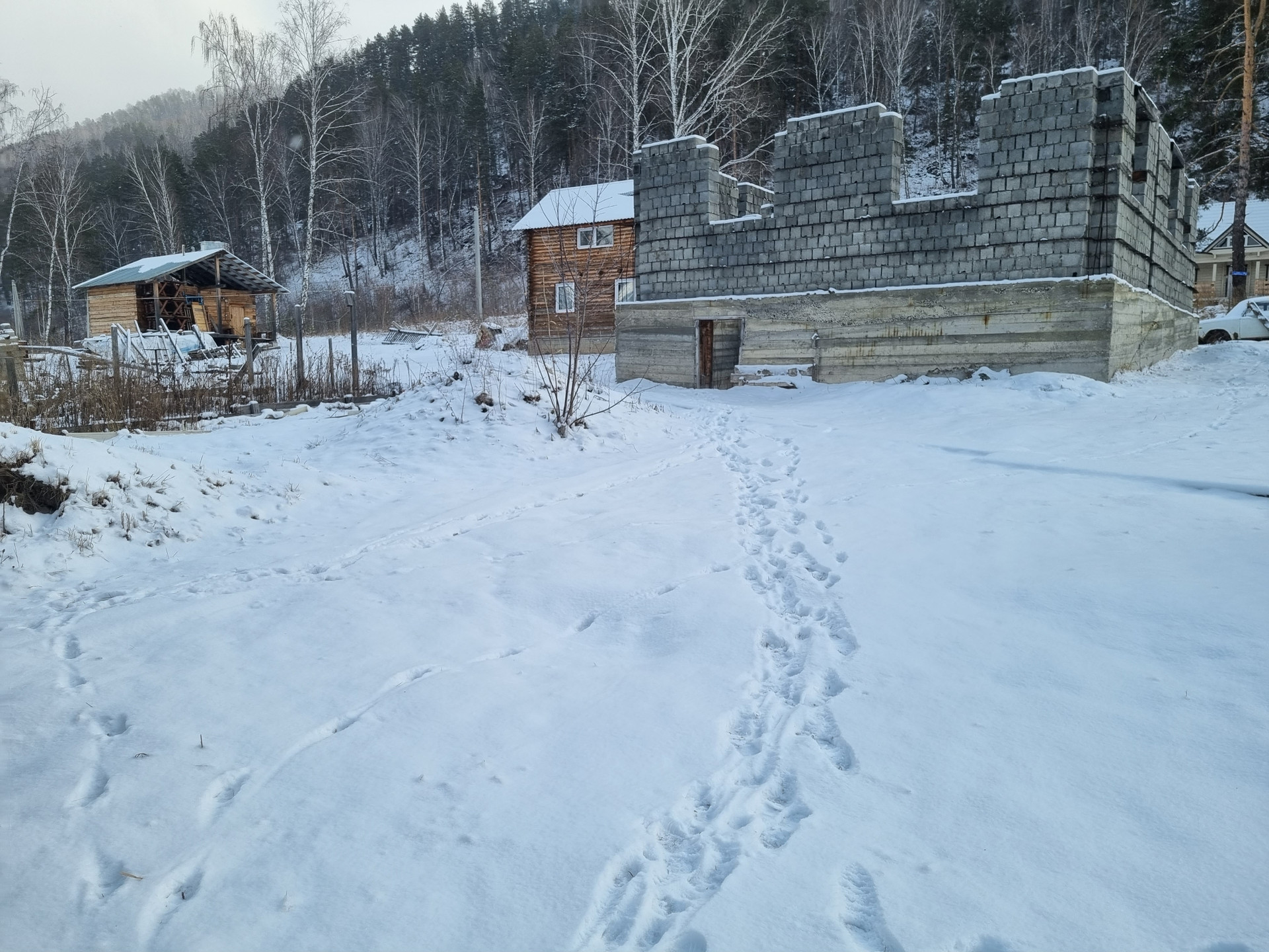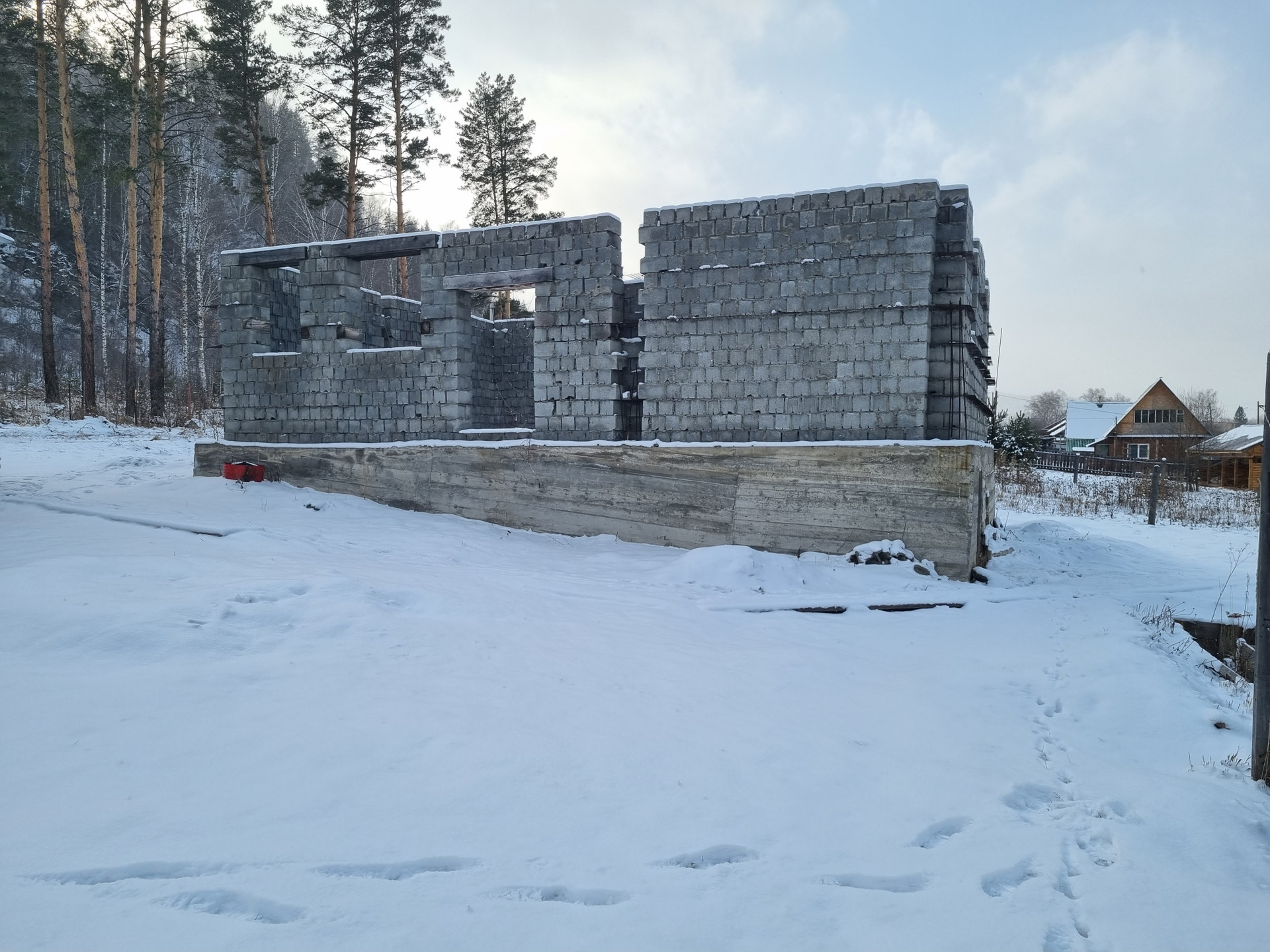 На участке имеется незавершенный строительством дом размером 8*10 метров из пескоблоков