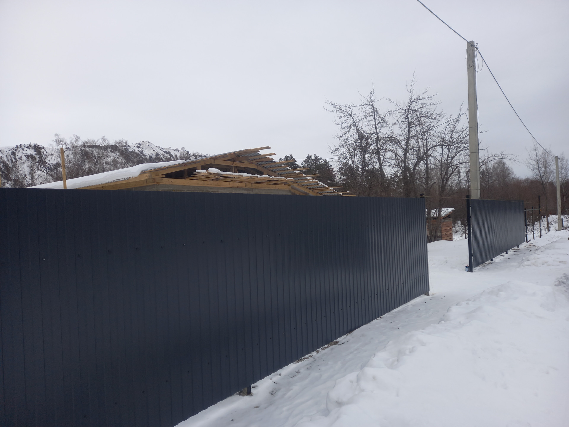 Кровля, ограда,  метал серый графит.