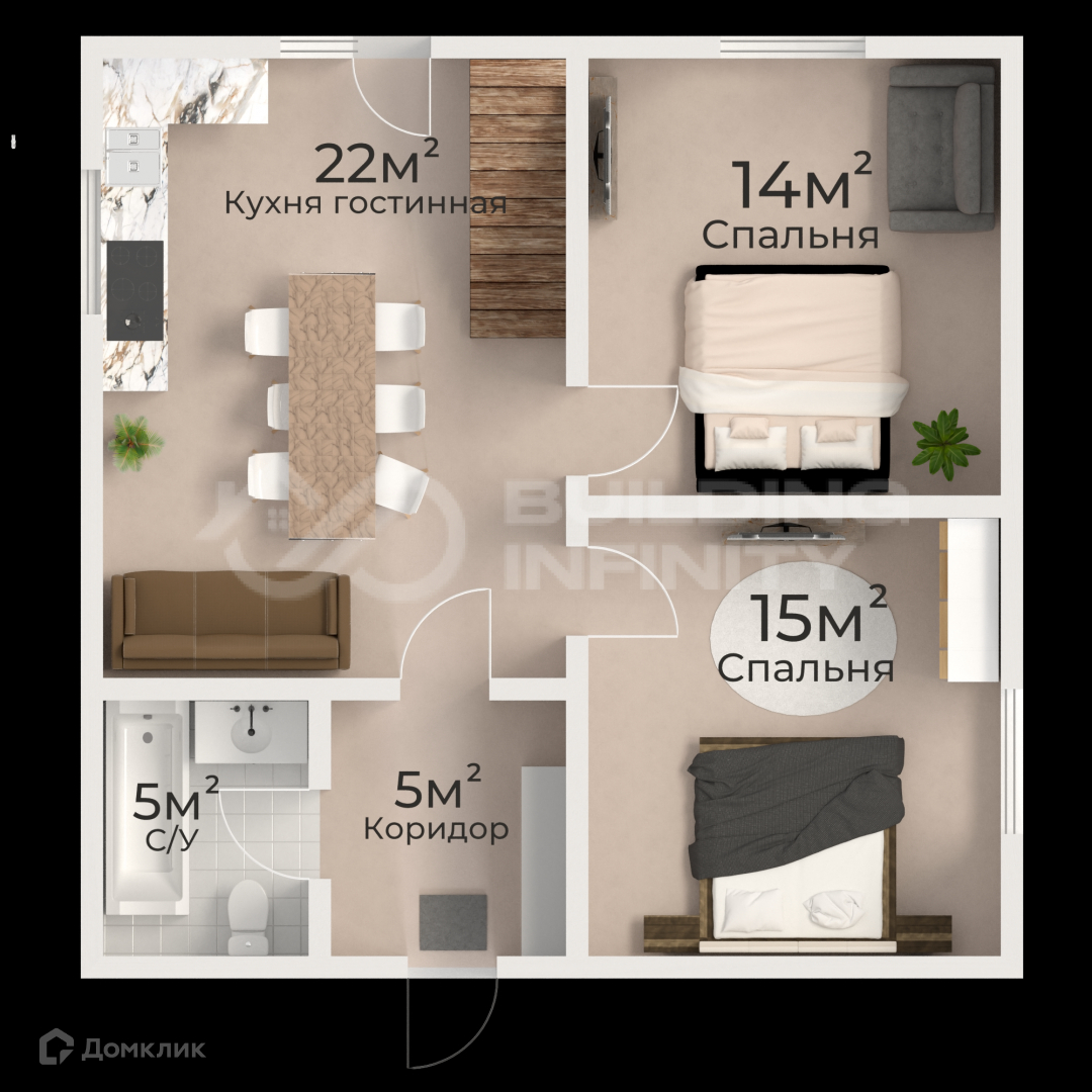 Спальни - 15м + 14 м.