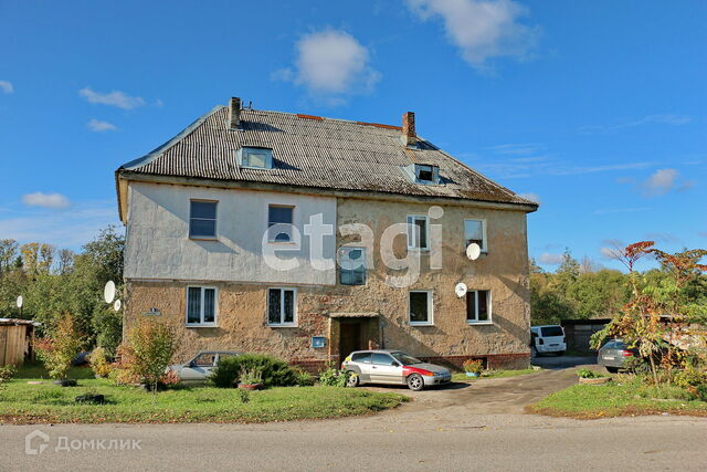 Продается трехкомнатная квартира в п. Черепаново Калининградской области (ор-р п. Люблино, г. Светлый) Квартира расположена на втором этаже двухэтажного немецкого дома. Дом кирпичный, квартира утеплена по периметру фасада. Над квартирой высокий чердак. Комнаты раздельные (10,4+17,6+18,6 кв.м.), кухня 9,5 кв.м., санузел совмещен (установлена душевая кабина), окна выходят на разные стороны. Отопление электрическое, есть камин, бойлер для горячей воды.В квартире выполнен косметический ремонт, состояние жилое, установлены стеклопакеты, входная дверь, на полу в комнатах ламинат, санузел в кафеле, в одной из комнат есть вместительная гардеробная, балкона нет. К квартире относится участок придомовой территории (порядка 6 сот.), под садово-огородные нужды. Участок не обработан, есть плодовые деревья и кустарники. Так же есть гараж и дровник. Поселок расположен в живописном районе, рядом есть озеро, удобный выезд на море (20-30 мин. на автомобиле), до Калининграда так же 20-30 мин. Рядом с домом остановка общественного транспорта. При продаже остается кухонный гарнитур с духовкой и варочной поверхностью, обеденный стол, холодильник, частично мебель в комнатах.
