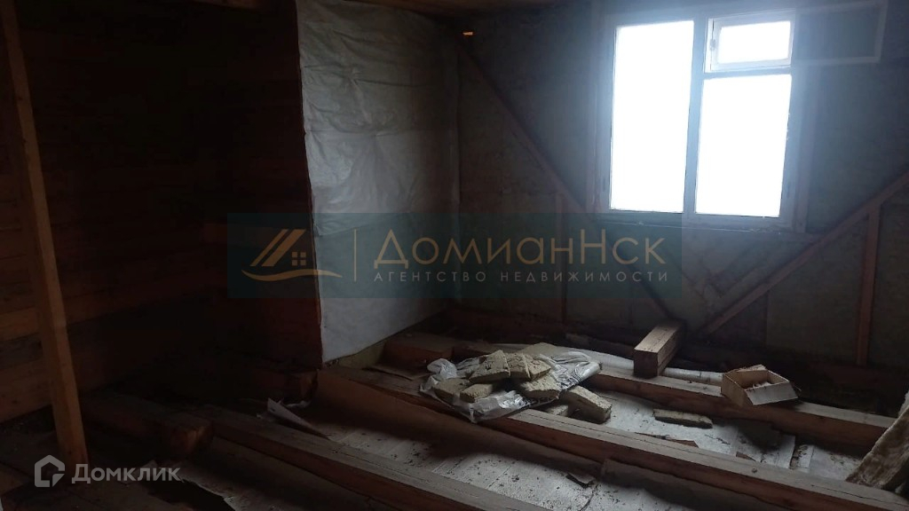 На втором этаже утеплитель однослойный и выход на чердак. Дом обшит уже сайдингом.