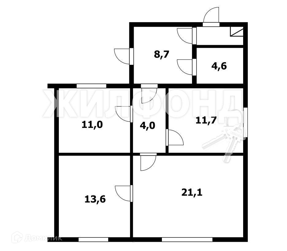 Жилая площадь 45.7 м2