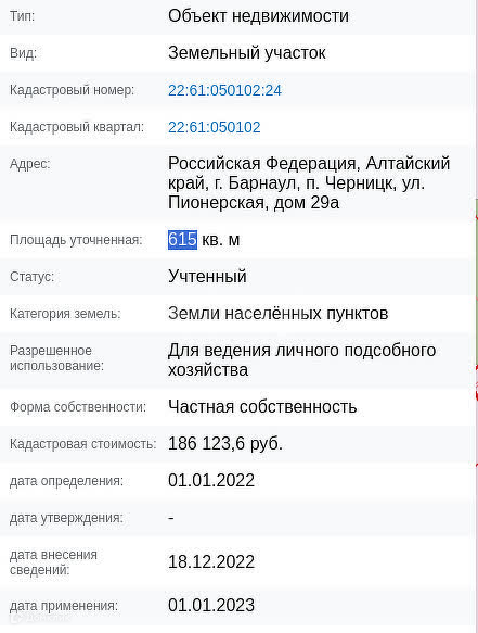 Продам земельный участок площадью 6 соток в живописном месте по адресу поселок Черницк улица Пионерская 29 А. Участок правильной прямоугольной формы.На участке имеется баня, недостроенный гараж на два автомобиля, сарай(можно под снос). Находиться на центральной улице но в тоже время вдали от проезжей части, что имеет ряд приемуществ перед соседями.Электричество заведено, газ, вода рядом. В поселке своя школа, магазины, ряд промышленных предприятий, и остановки общественного транспорта, откуда без проблем можно добраться в любом направлении. Рядом бор (грибы, ягоды), имеется озеро посреди поселка. Звоните. Показ по договоренности. Покажу в удобное время.