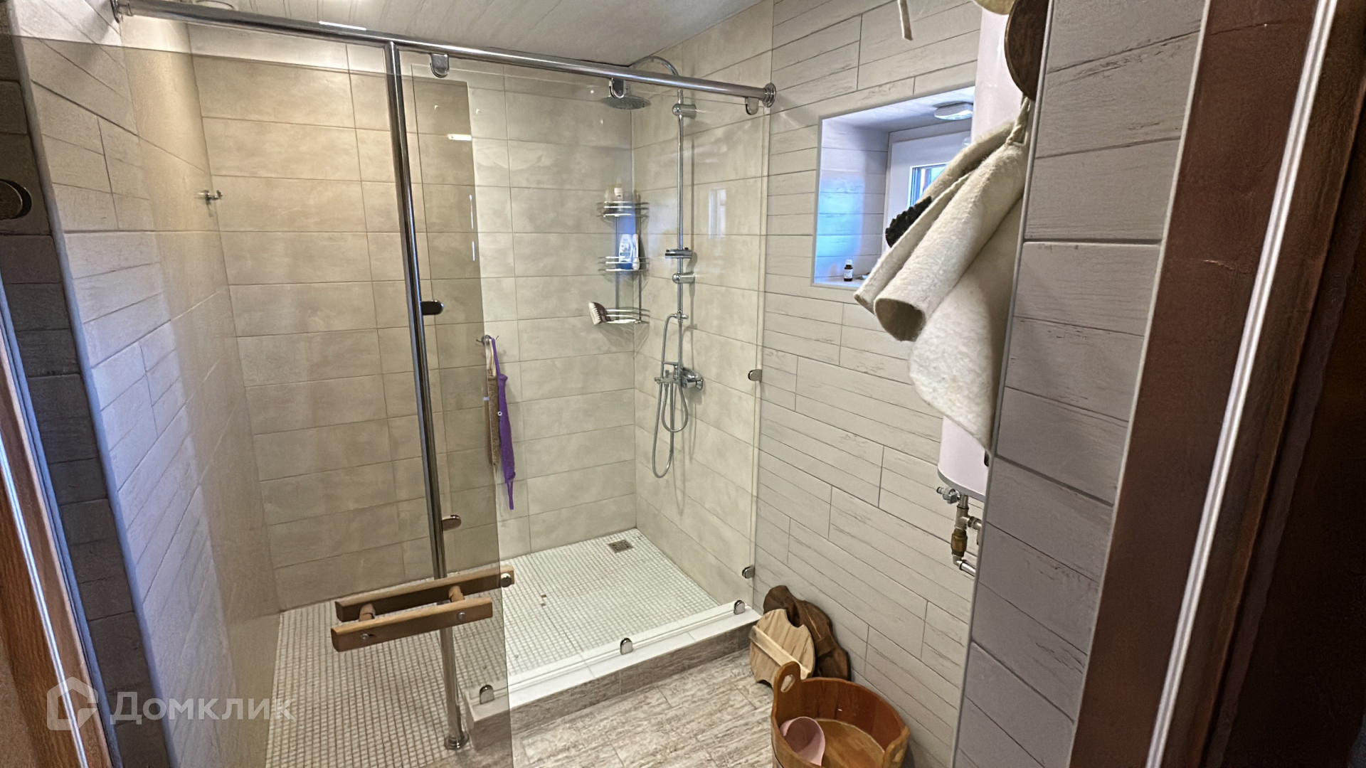 На участке есть баня 50 м.кВ., с открытой террасой и электрической сауной, нагревающейся со звонка телефона. Всё сделано капитально, со вкусом и с возможными, дизайнерскими решениями.
