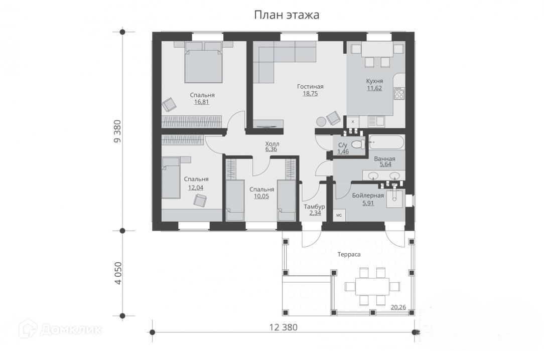 Общая площадь 91 м2