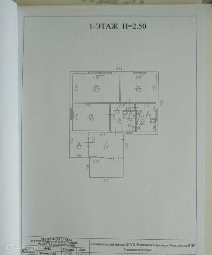 Общая площадь 53.6 м2