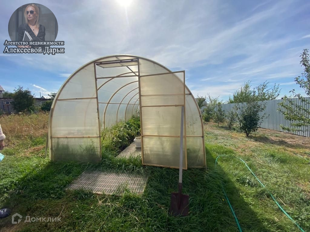 + Земельный участок чистый, правильной формы, на котором имеются теплица и различные насаждения