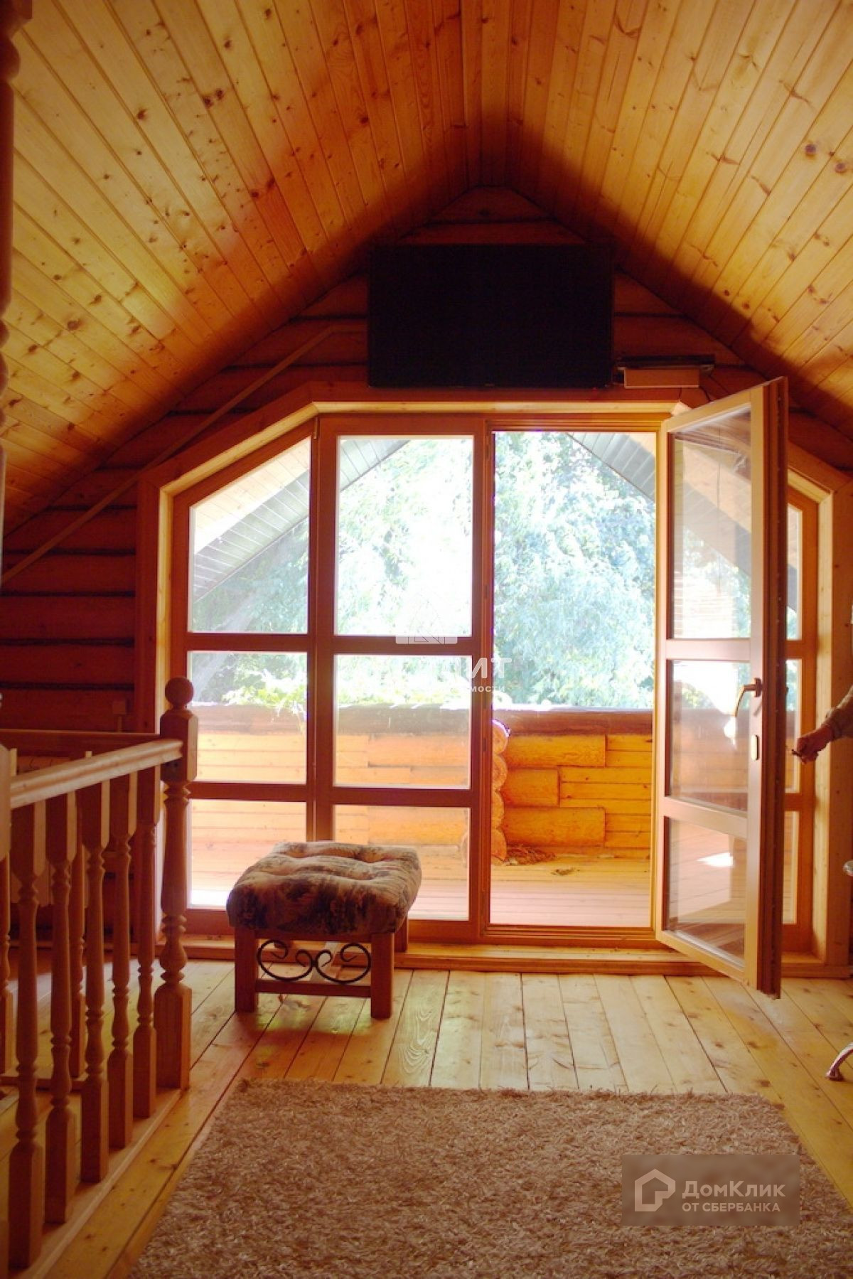 На второй этаж ведет удобная деревянная лестница. Здесь личное пространство хозяев — четыре светлые спальни, санузел с душевой кабиной , гардеробная. Отсюда открывается отличный вид на живописный лес.