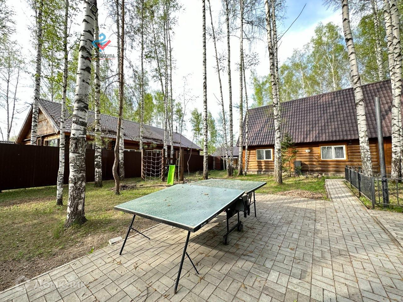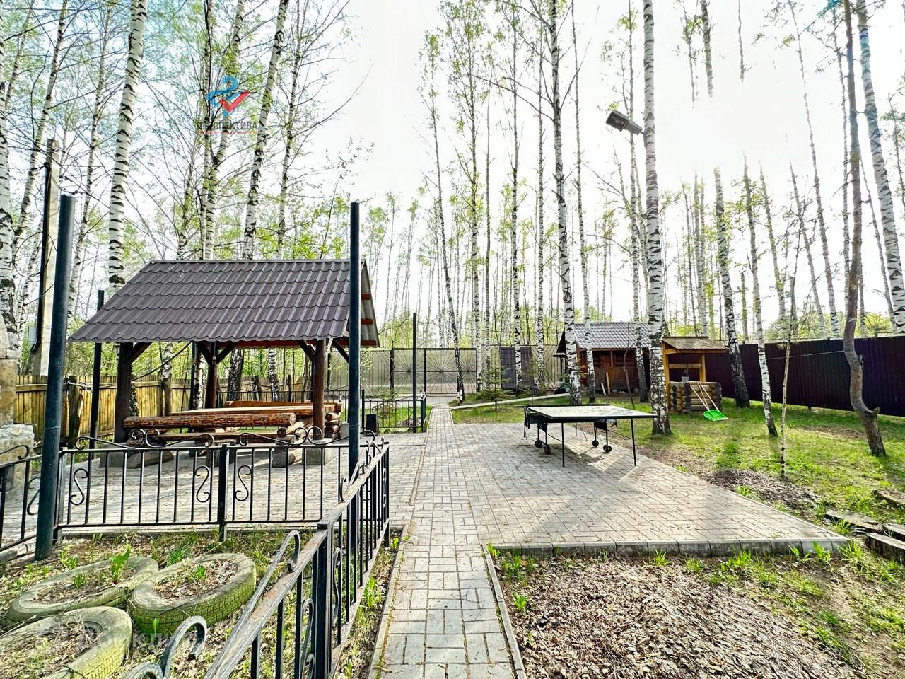 На дворе беседка с навесом и большой мангал с казаном. Есть настольный теннис.
