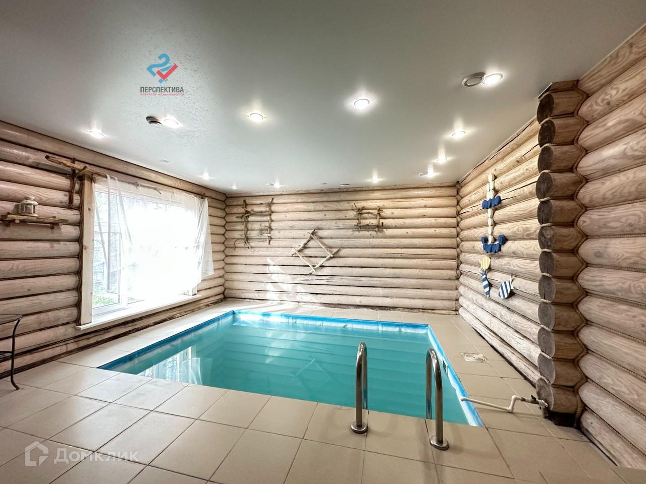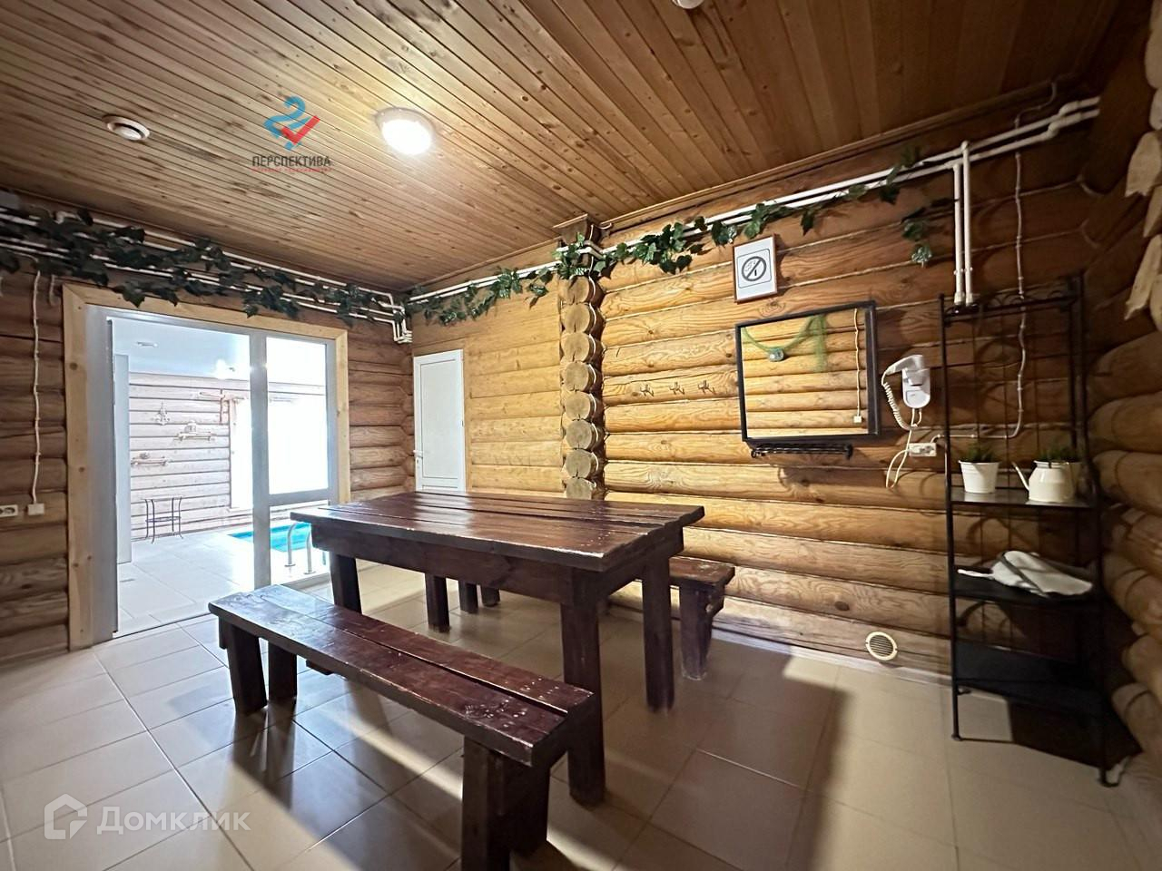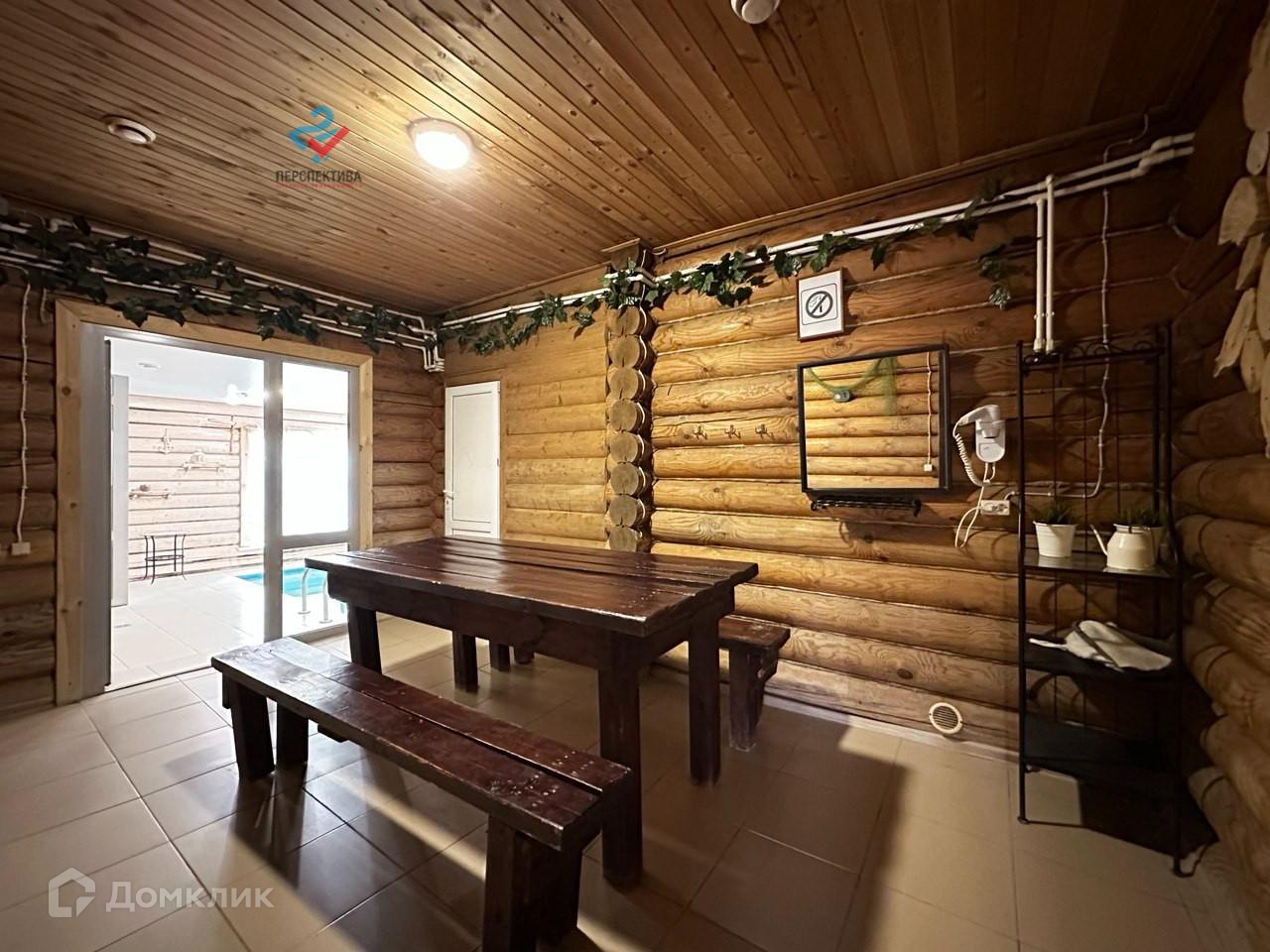 В доме есть бассейн, сауна, дровяная баня, 4 спальни, просторная кухня-гостинная.