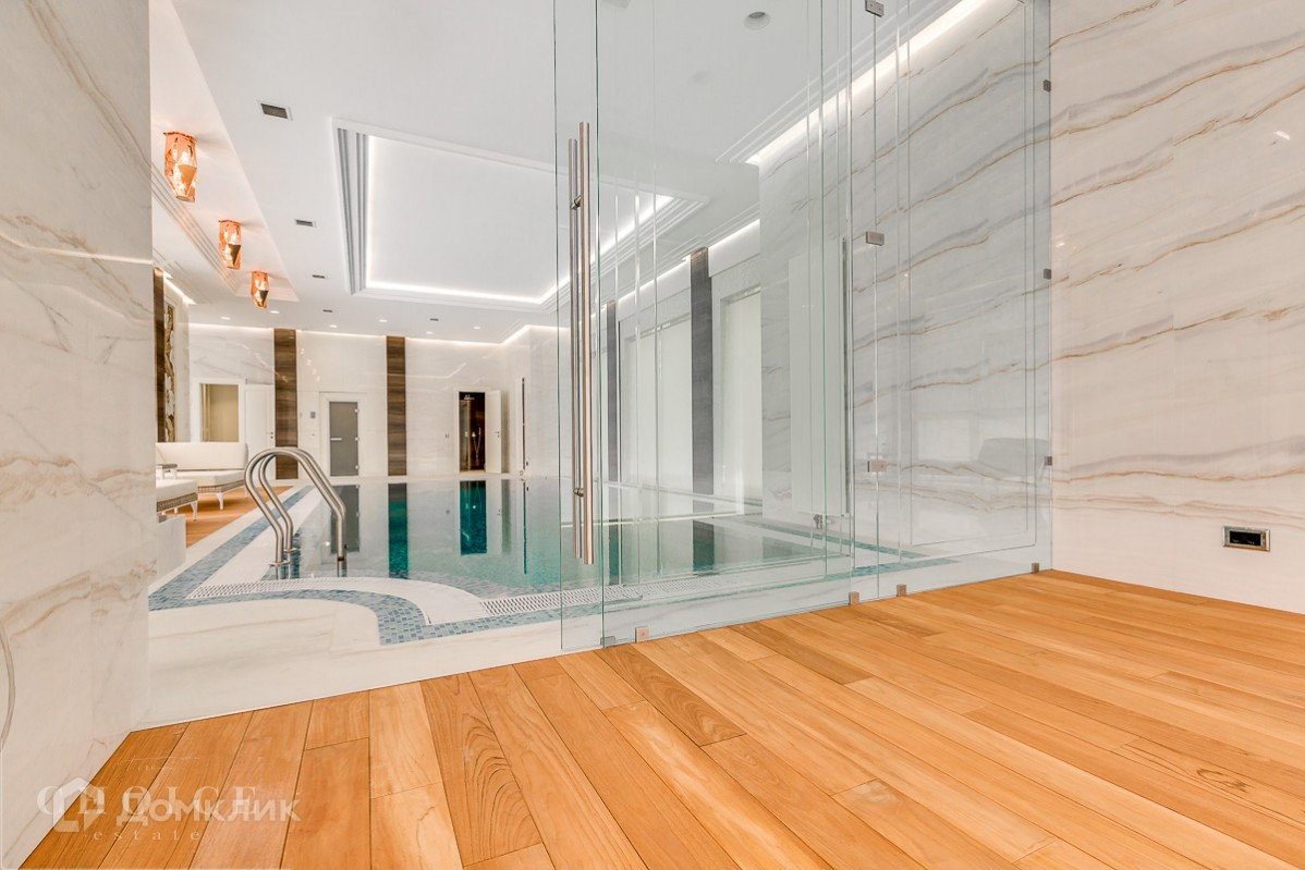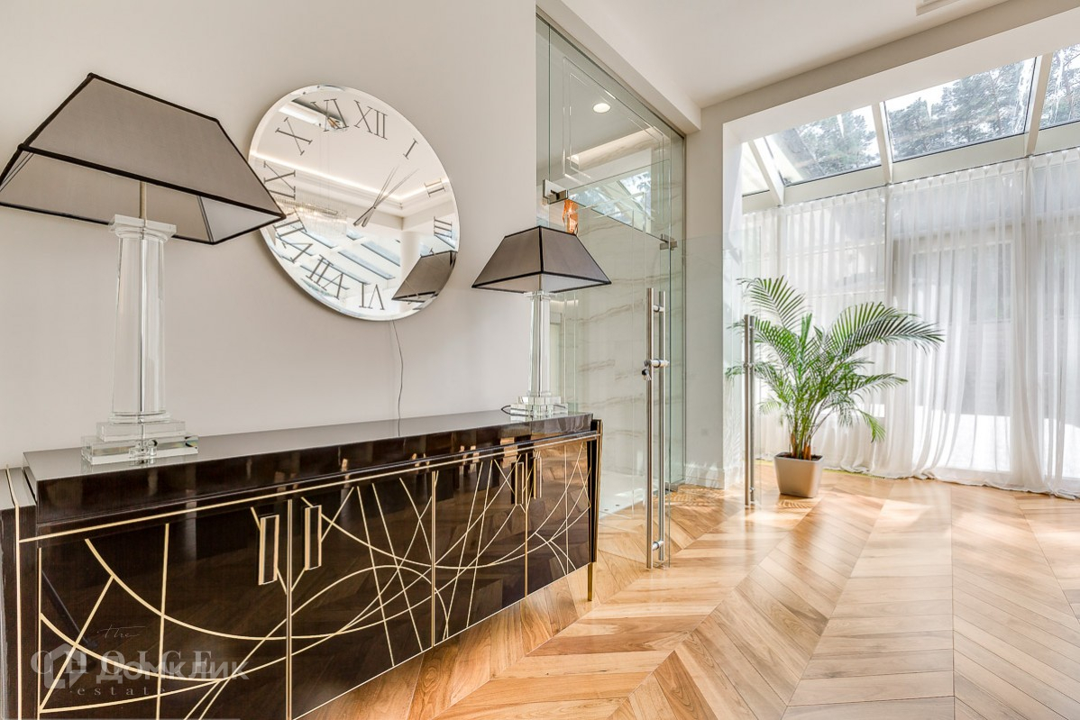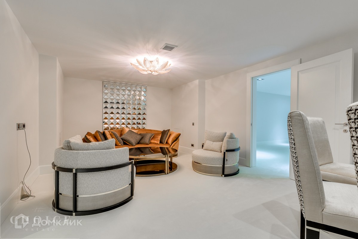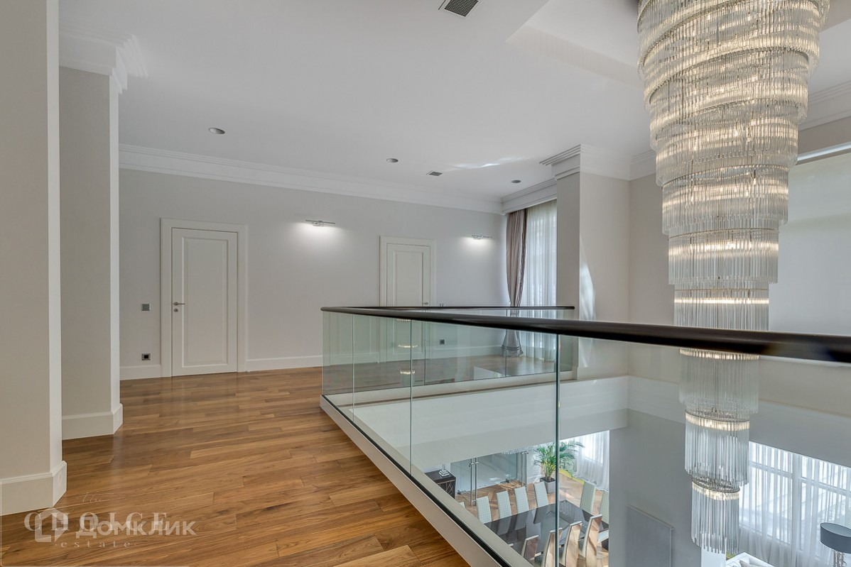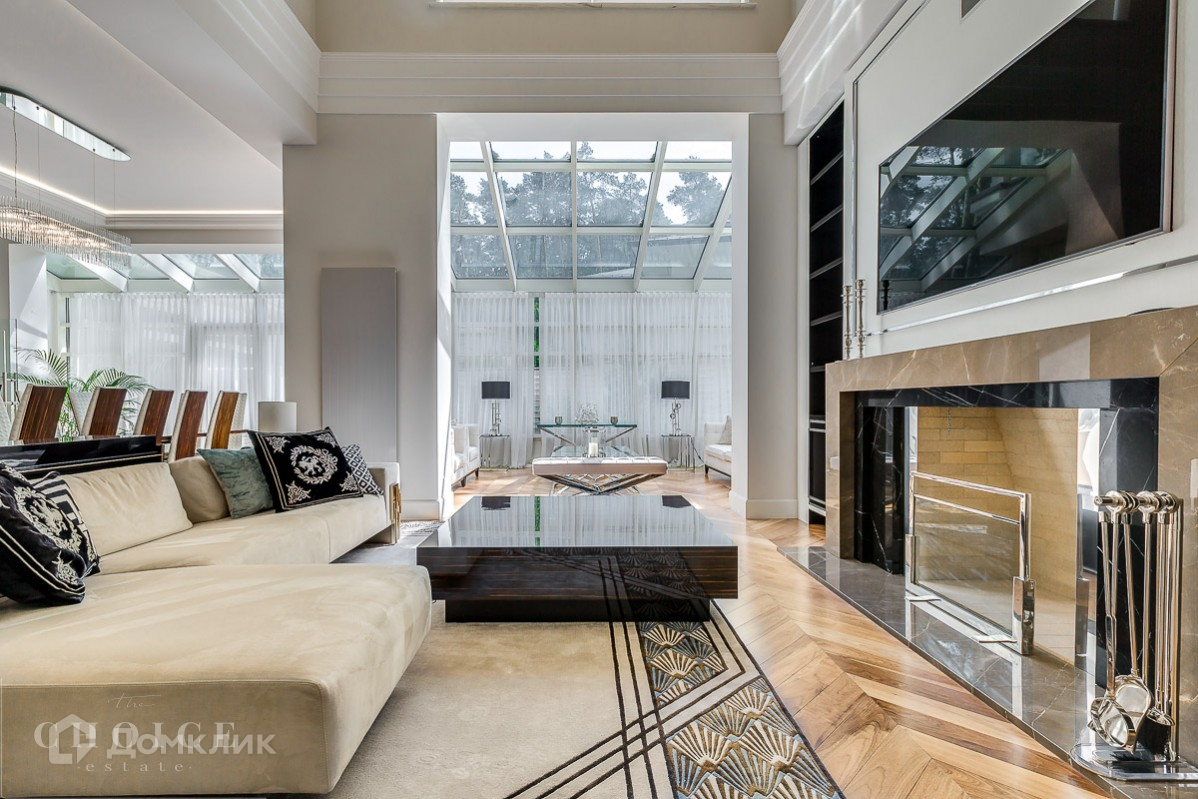 Просторный и светлый загородный дом находится в поселке «Жуковка-2», который расположен в 8 км от Москвы. Добраться до  резиденции можно по Рублево-Успенскому шоссе. Земельный участок  25 соток, а общая площадь коттеджа – 800 м2. Находится на лесном участке среди великолепных вековых сосен. Трехуровневый коттедж отличается следующими особенностями:на территории обустроен бассейн открытого типа и построен банный комплекс,