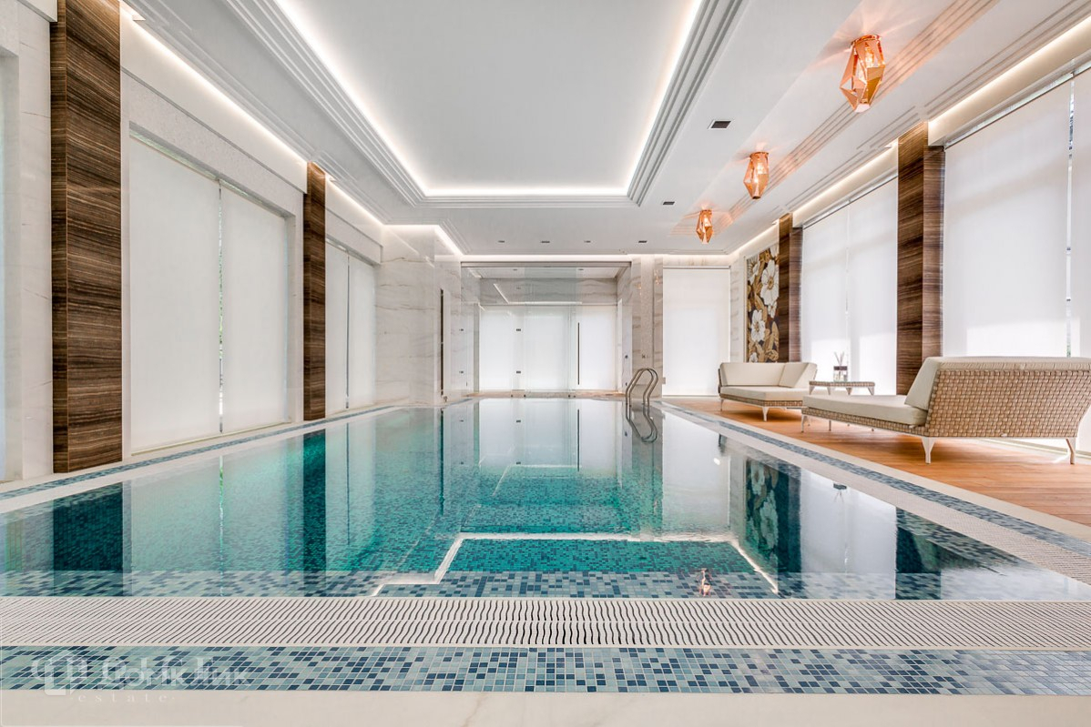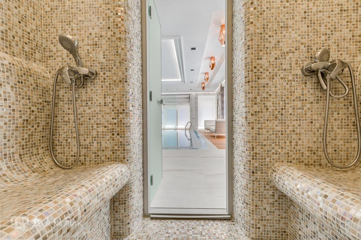 1 Этаж: бассейн, гардеробная, гостиная, кухня, санузел, СПА-комплекс, спальня с гардеробной и санузлом, терраса, хамам,