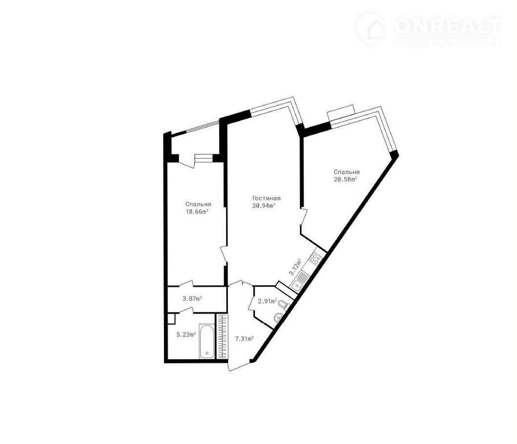 Общая площадь 92.8 м2