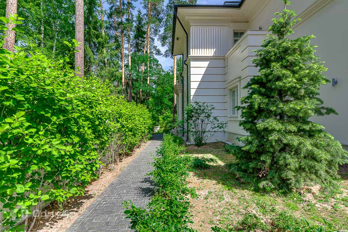 Предлагаем в аренду просторный и светлый загородный дом в поселке «Жуковка-2», который расположен в 8 км от Москвы. Добраться до  резиденции можно по Рублево-Успенскому шоссе. Земельный участок  25 соток, а общая площадь коттеджа – 800 м2. Находится на лесном участке среди великолепных вековых сосен. Трехуровневый коттедж отличается следующими особенностями:на территории обустроен бассейн открытого типа и построен банный комплекс,