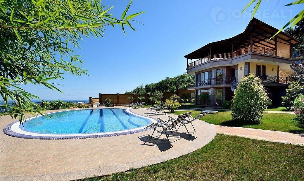Сдается в аренду посуточно двухэтажный дом с бассейном, с зоной для барбекю и красивым видом на море и гору Аю-Даг