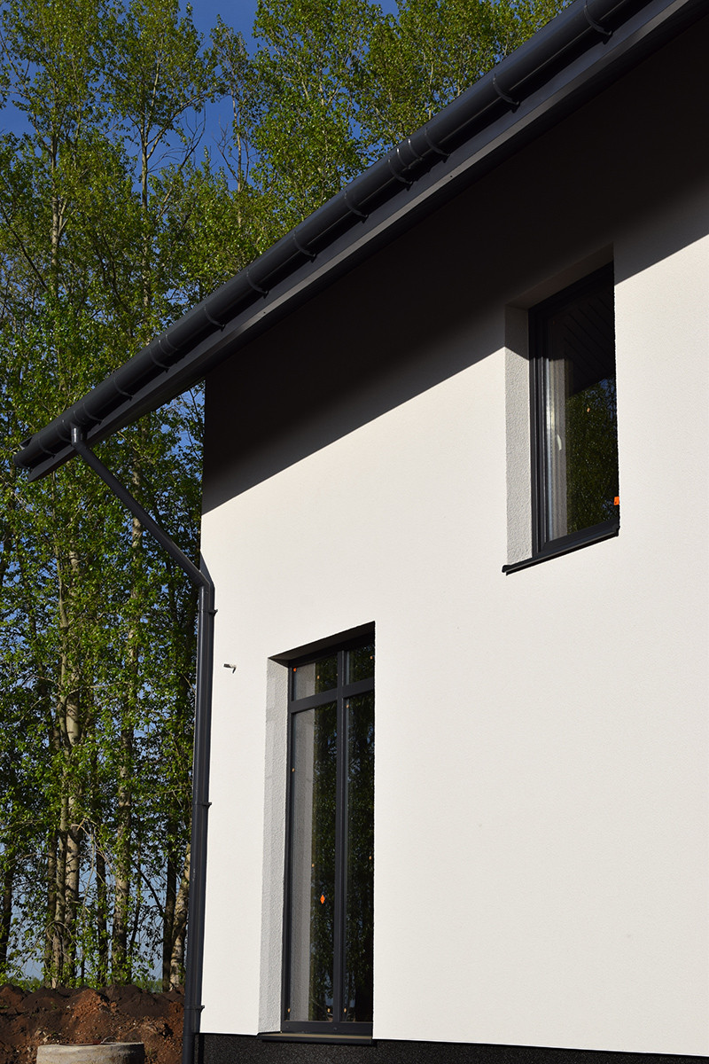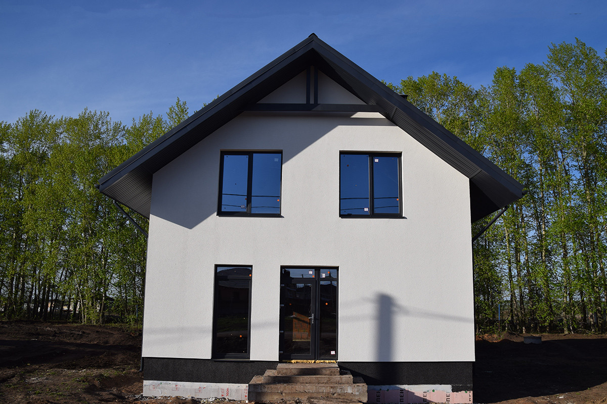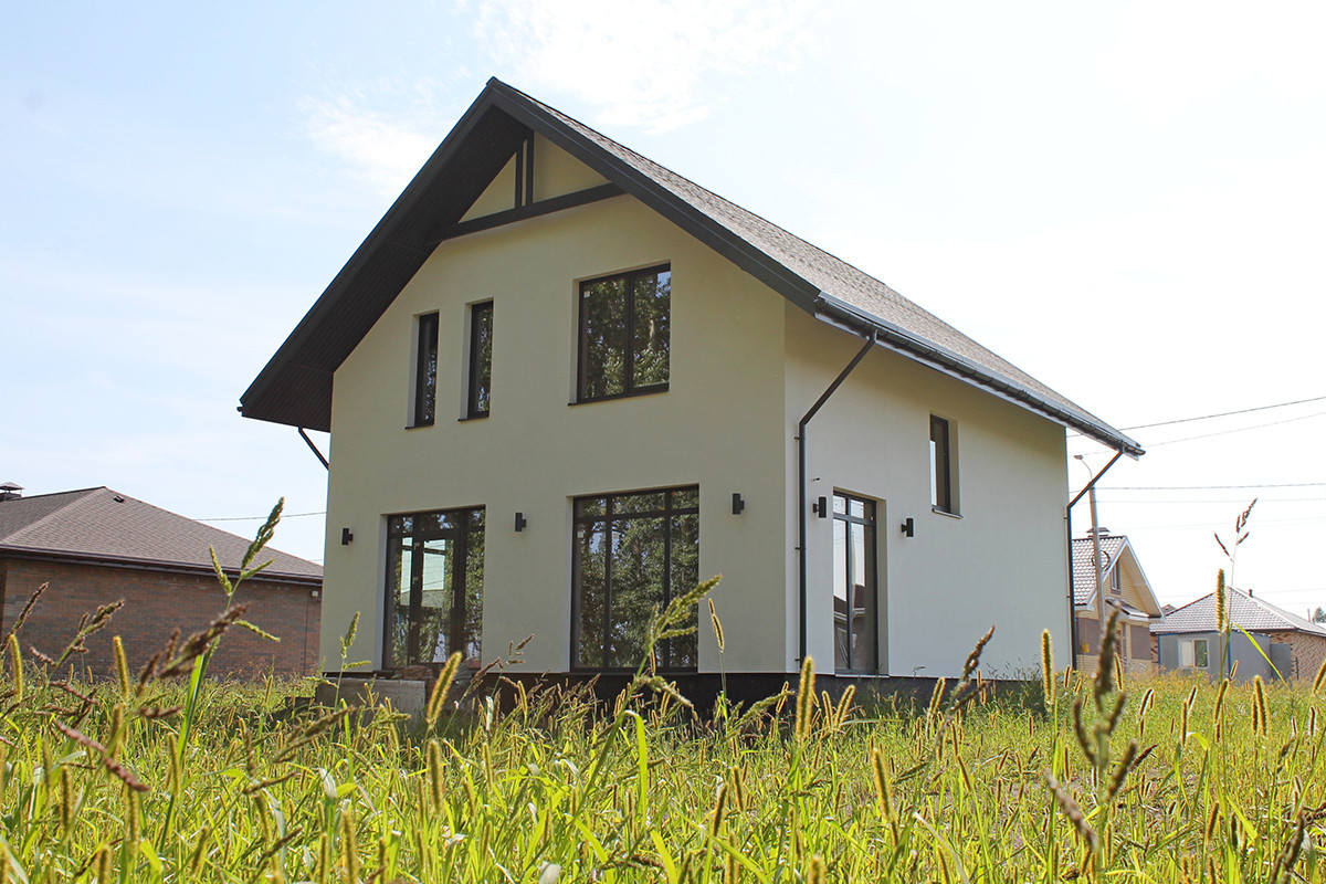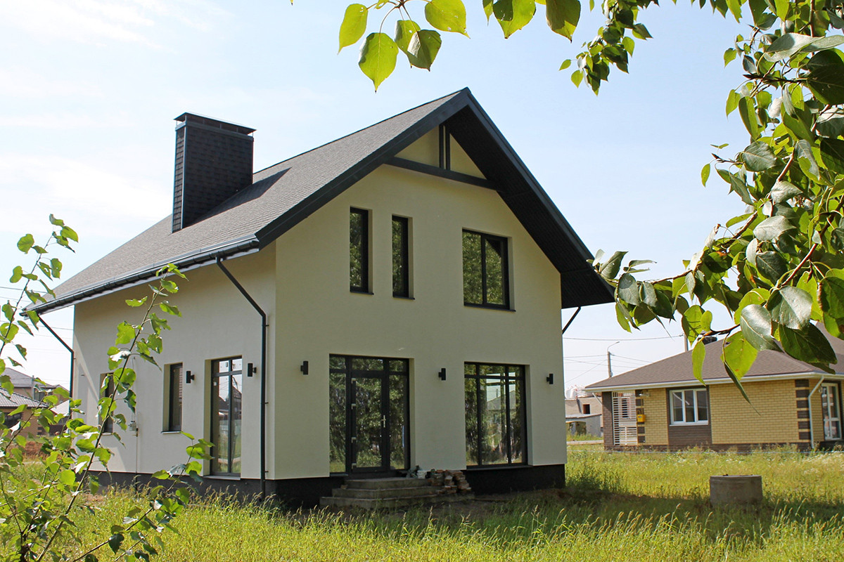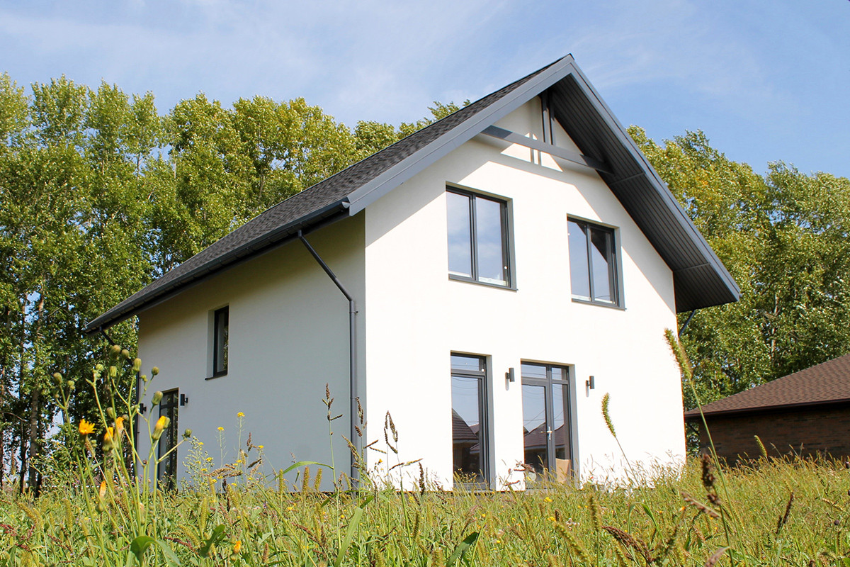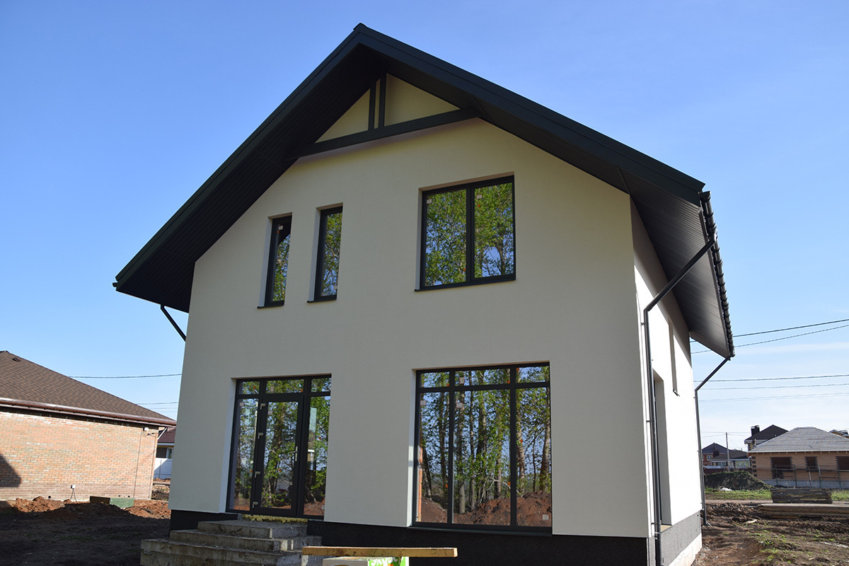 Это уютный, семейный дом с фасадом, крышей (металлочерепица), водосточной системой, входной дверью, окнами (5-камерный профиль). Небольшая, по меркам частных домов площадь в 90 кв.м. позволит создать уют и теплую атмосферу в вашем будущем доме, а также позволит сэкономить на платежах за отопление, ведь отапливать дом такой площади намного проще, чем огромные полупустые пространства в больших домах. К тому же этот дом отлично сохраняет тепло.