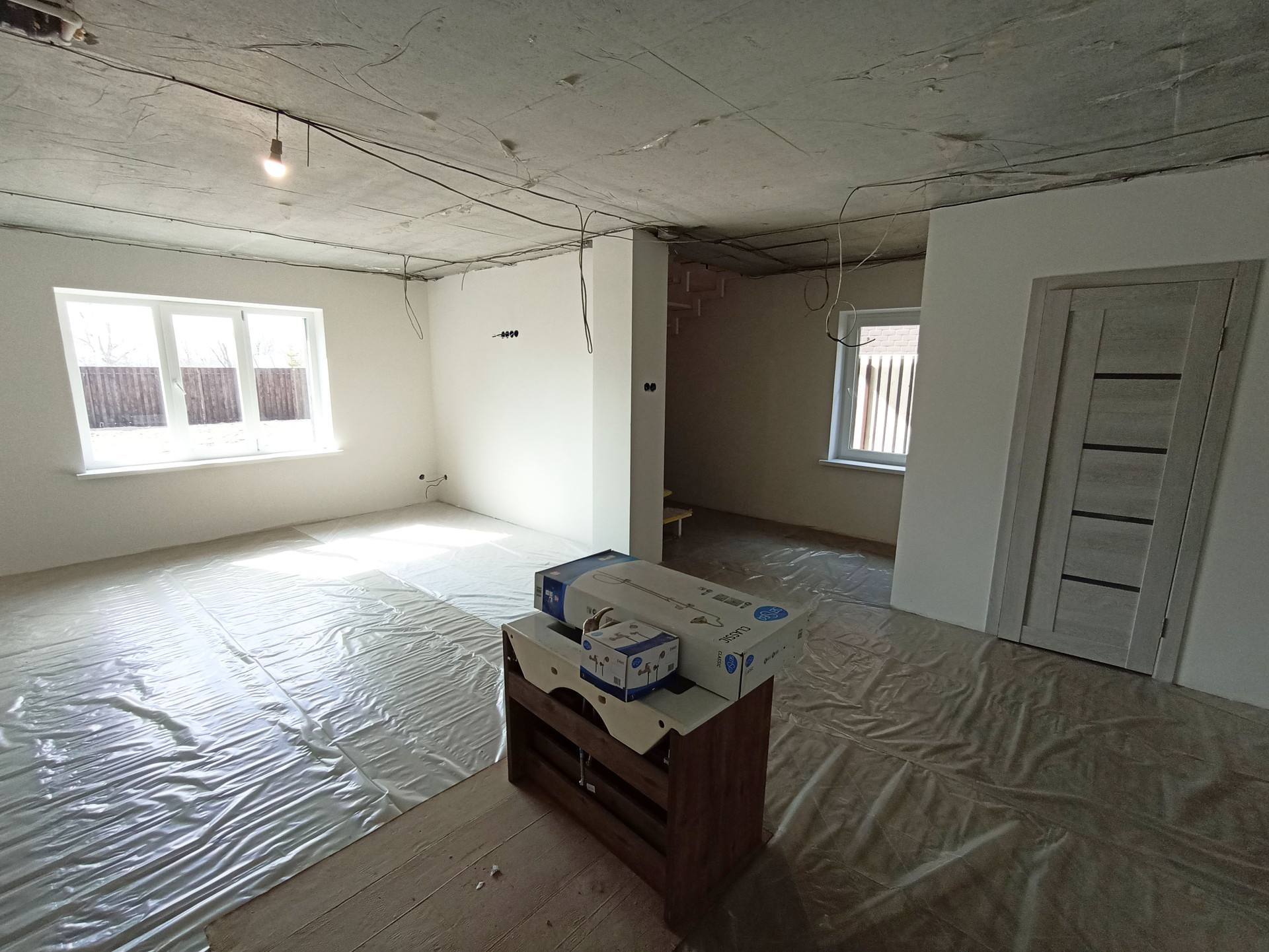 Сделана разводка электрики и сантехники;