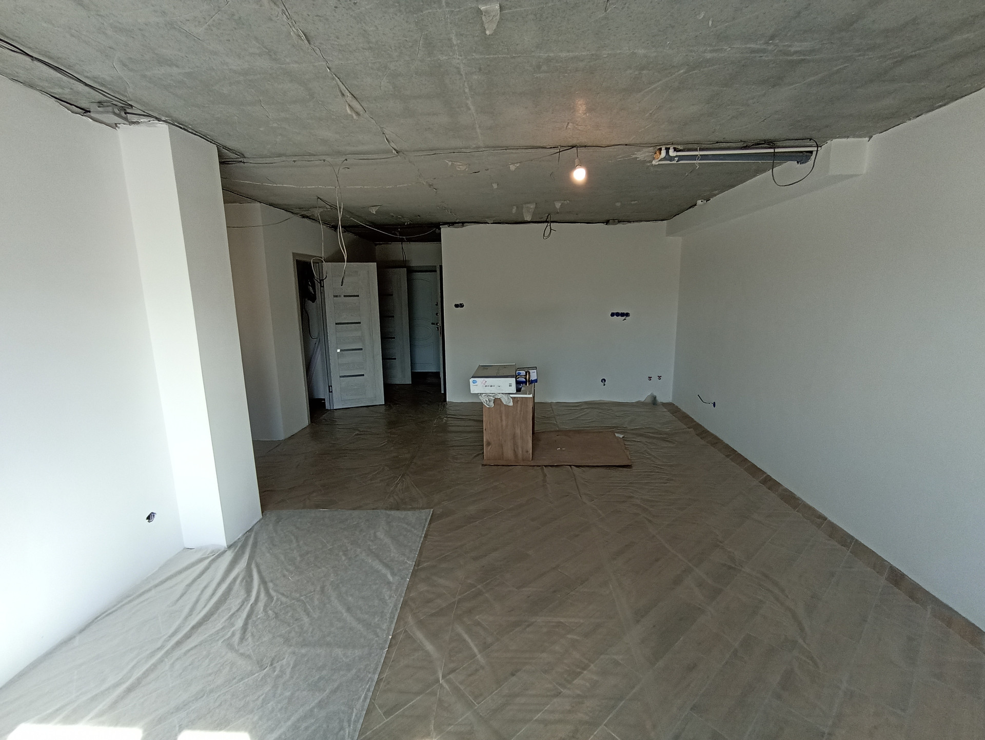 Стены оштукатурены, подготовлены под покраску;