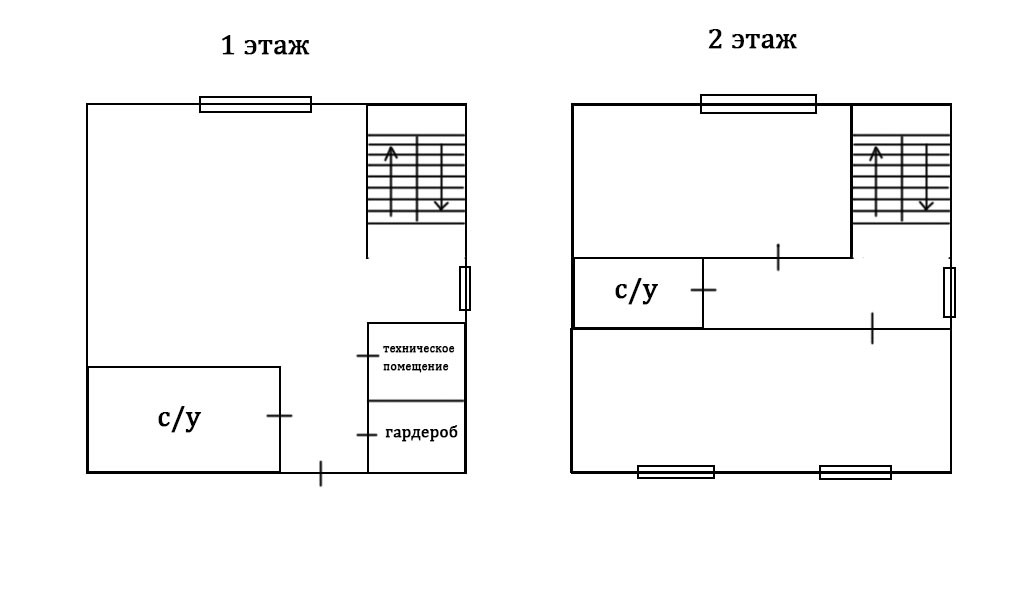 На 1 этаже расположена кухня-гостиная, с/у, гардероб, техническое помещение. На 2 этаже - 2 спальни, с/у.