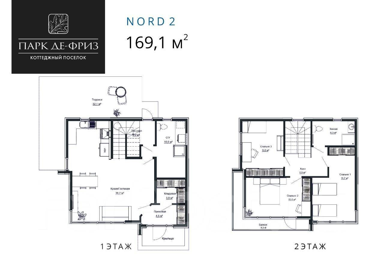 2-этажный дом, 169.1 м2, на продажу в посёлке Де-Фриз