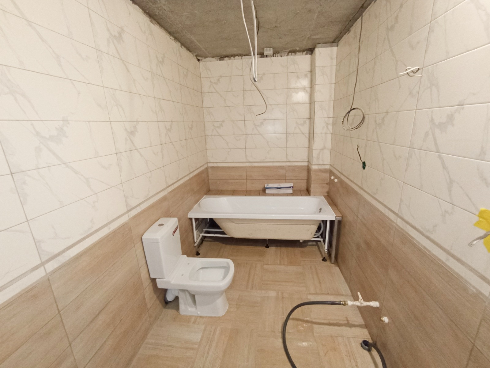 Установлена сантехника, в санузле уложена плитка.