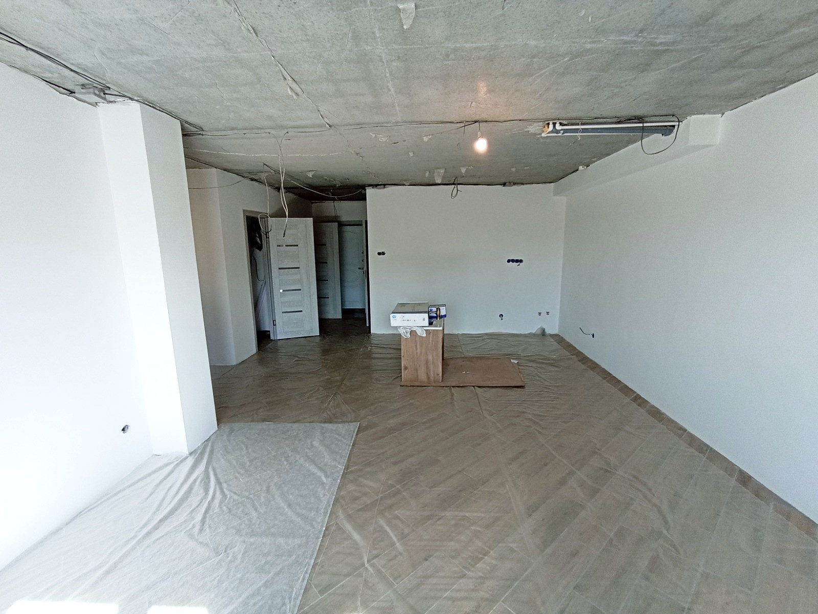 Стены оштукатурены, подготовлены под покраску;