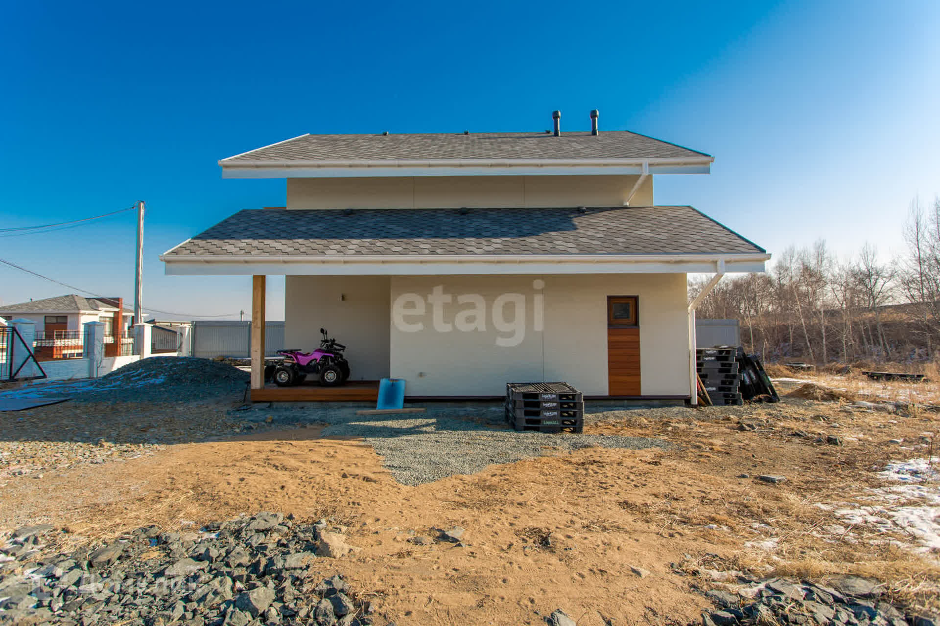 Компания Этажи-Владивосток рада предложить вам уникальный двухэтажный коттедж, расположенный в поселке Де-Фриз на улице Прибрежная, дом 47. Этот жилой дом находится в охраняемом коттеджном поселке Белый Парус и представляет собой настоящий рай для любителей морского отдыха.