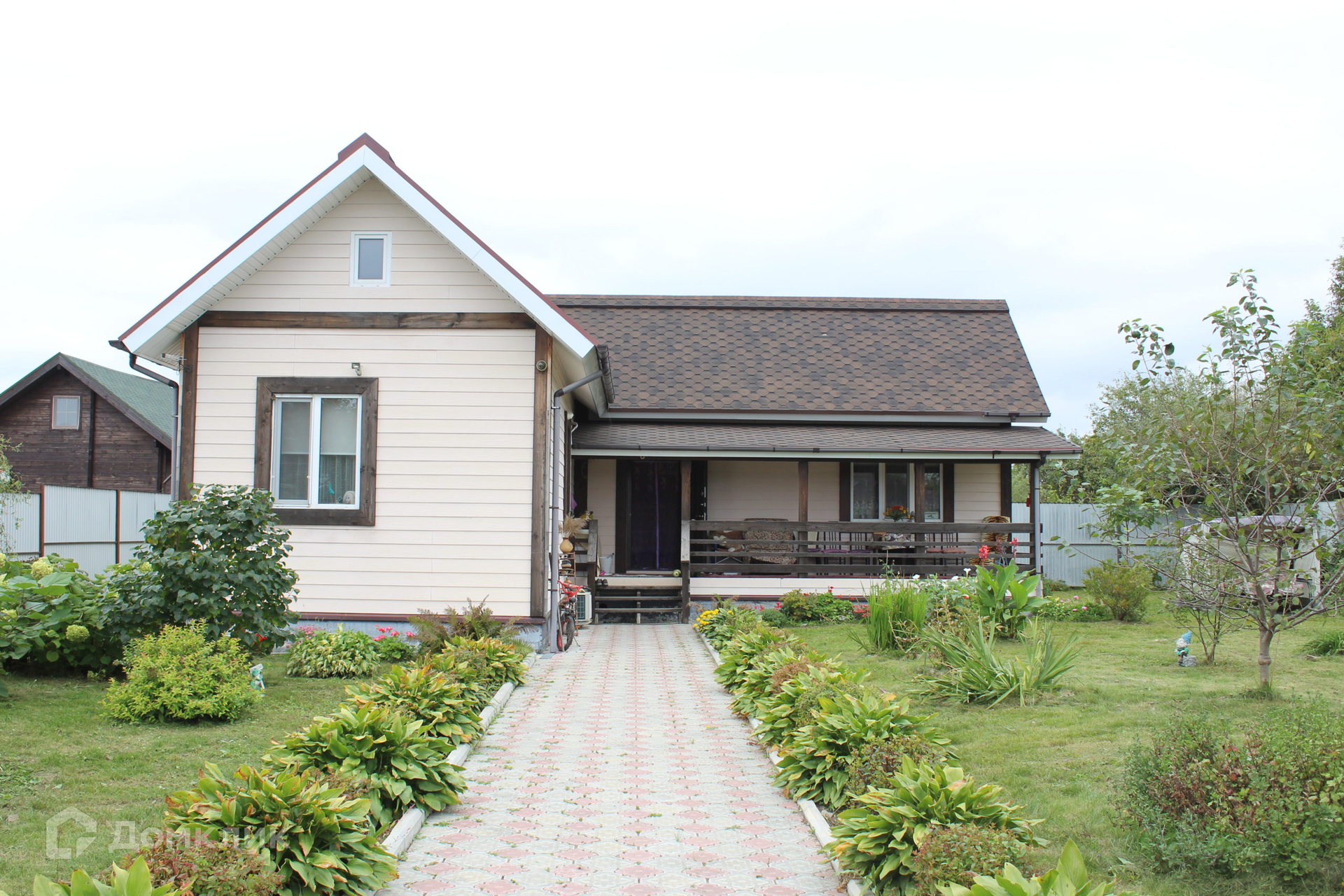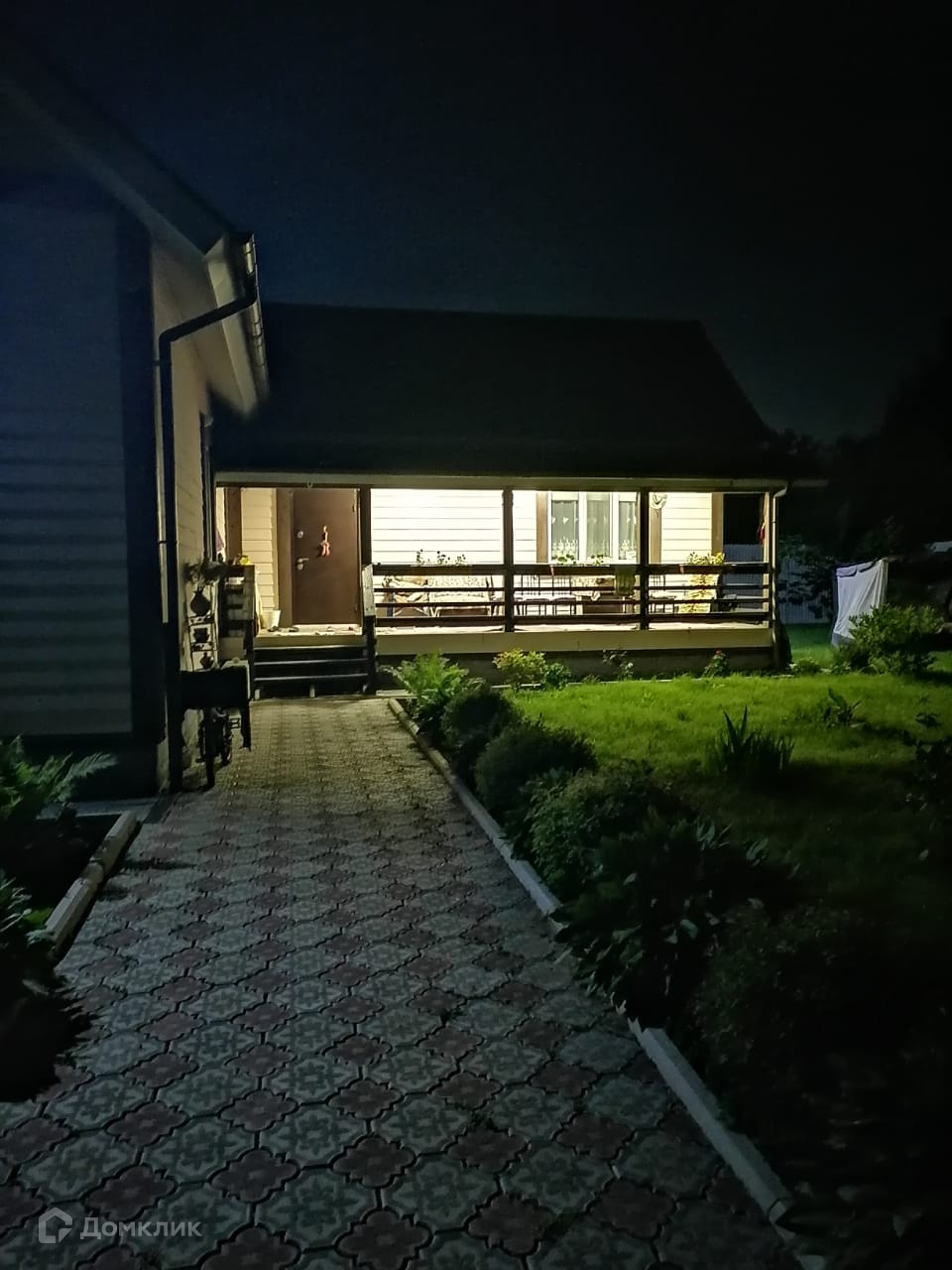 Участок ровный, сухой (по всему периметру выполнен дренаж), огорожен забором с откатными воротами. Дорожки и парковка для авто вымощены брусчаткой.