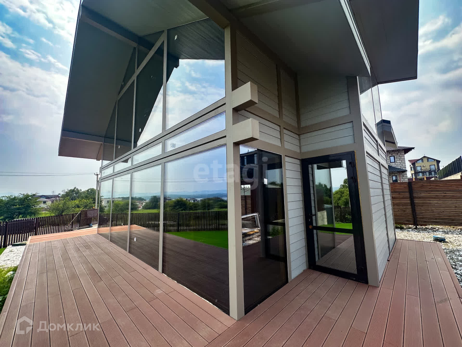 Компания Этажи Владивосток предлагает к продаже роскошный, современный коттедж, расположенный в элитном районе пригорода Владивостока, Де-Фриз. Отличные подъездные пути, асфальт до участка. Дом построен по технологии Фахверк, с использованием экологически чистых и качественных материалов. Утеплитель PIR панель 80 мм, с тремя слоями антикоррозийного покрытия. Несмотря на большую площадь остекления и множество мифов, дом очень теплый, при строительстве использованы двухкамерные стеклопакеты Guardian Glass. Толщина стеклопакета 65 мм. Крыша, утеплитель PIR панель 80 мм, гибкая черепица. Внешняя отделка дома выполнена из пожароустойчивых фиброцементных панелей, они устойчивы к выцветанию, повреждениям и легко моются водой. На участке установлена автономная септик станция. Вода питевая-скважина. Общая площадь дома по документам 180 квадратных метров. Общая площадь участка 8 соток. Приличные доброжелательные соседи. Дом огорожен забором, откатные ворота. Дом без внутренней отделки, под реализацию ваших желаний, подходит под ипотеку. Если вы мечтаете о загородной жизни в черте санитарно-курортной зоны, но не хотите тратить время на дорогу домой, успейте стать новым хозяином!