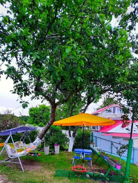 - Возле дома плодово-ягодные насаждения: яблоневый сад, несколько елей вокруг дома, кусты смородины (красная, чёрная, жёлтая) клубника, вишня, цветы, кусты сирени, багульник, прекрасные садовые розы, малина, пионы.