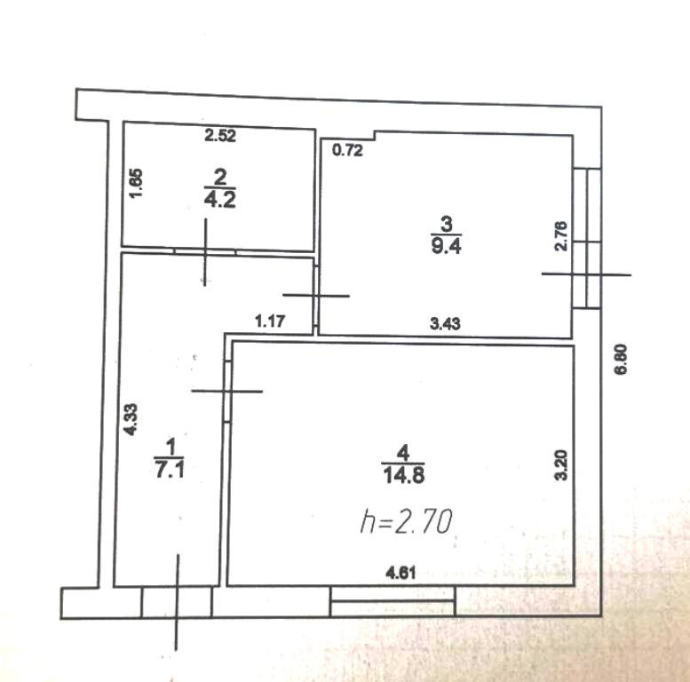 Жилая площадь 14.8 м2