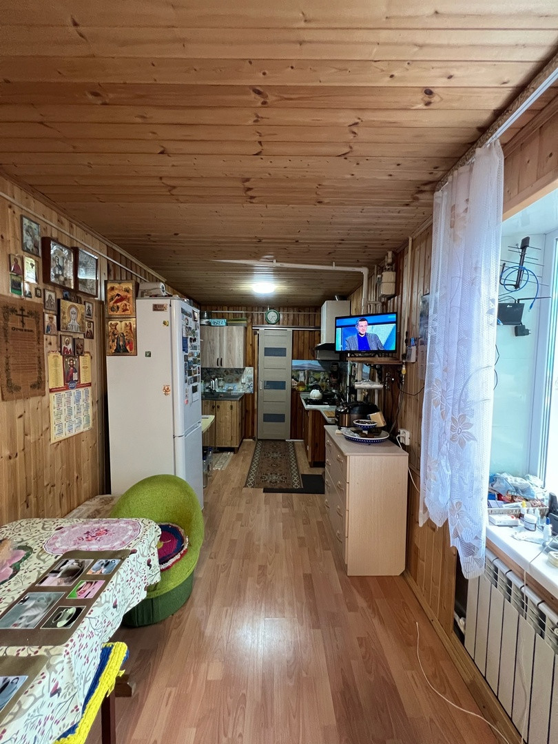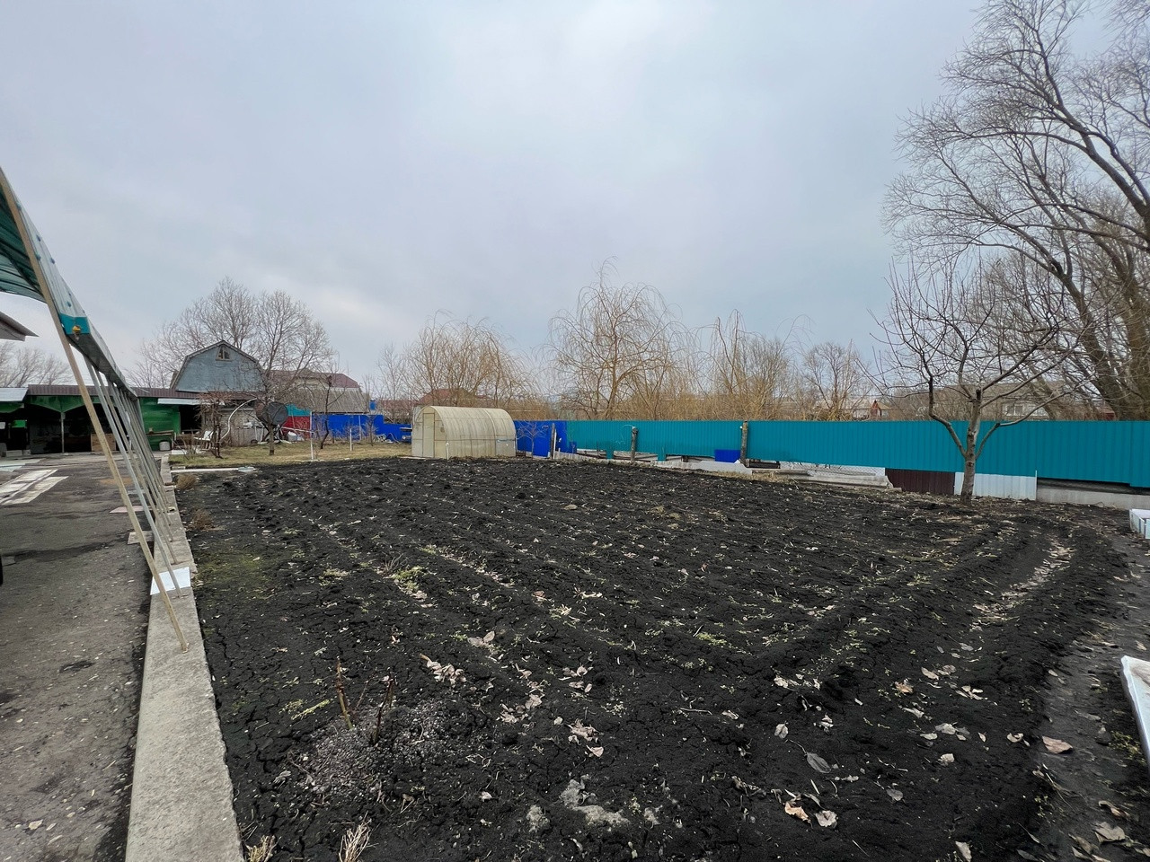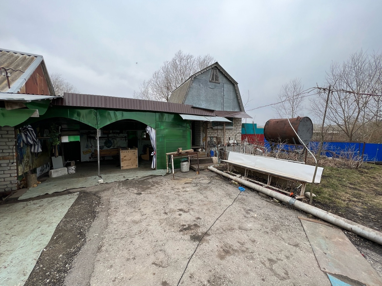Участок 9 сот. ухожен, в собственности. Имеются надворные постройки, гараж, навес для автомобиля, ворота откатные.