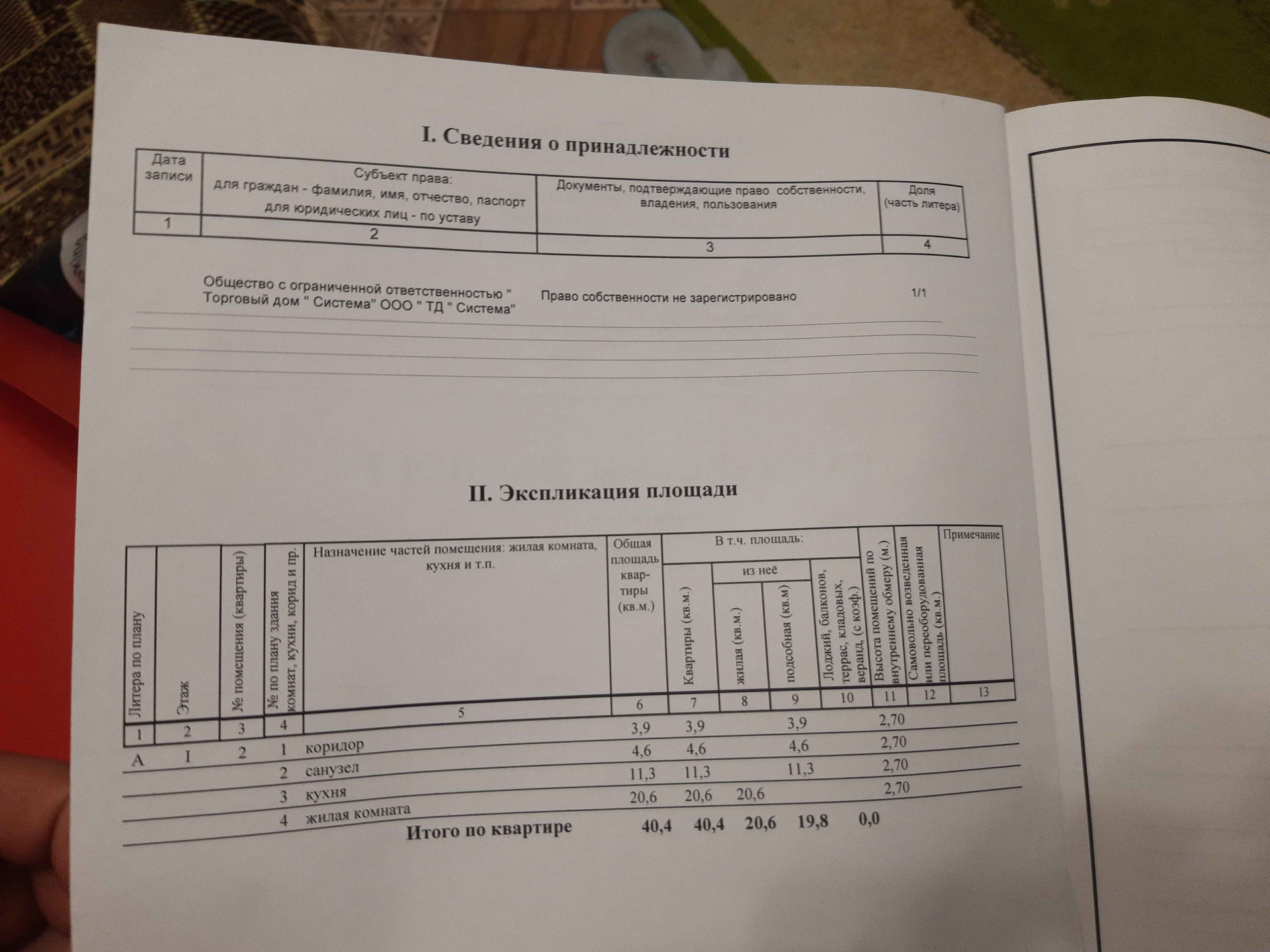 Общая площадь 40 м2