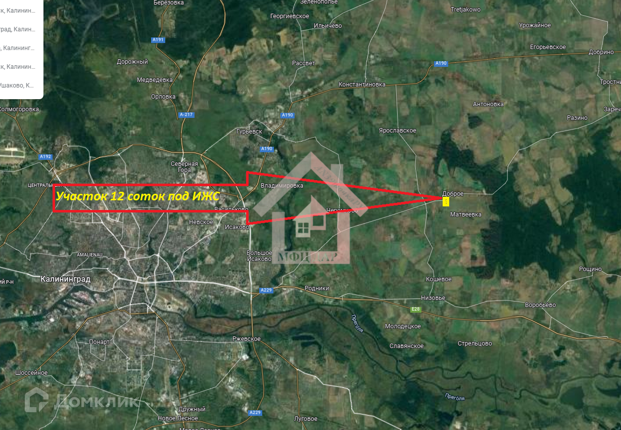 Продается перспективный земельный участок под ИЖС в поселке Доброе Гурьевского района. Установлены столбы и проведено электричество. Есть возможность подключения. Рядом ведется активная застройка. Подвод газа планируется на 2023 год. В 15 км от центра Калининграда . Имеется возможность приобретения четырех участков расположенных вместе. (12 соток, 12 соток 10 соток, 9,5 соток.)