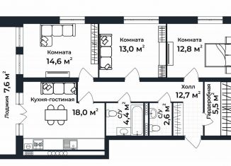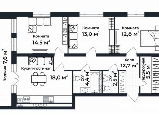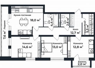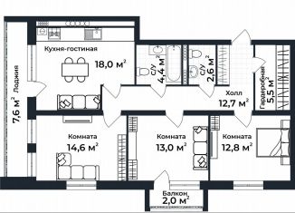 Трехкомнатная квартира на продажу, 87.4 м2, улица Долголетия, 3к2